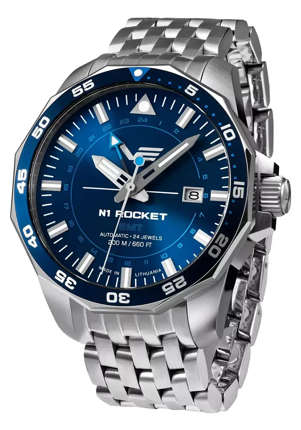 Pohon zajišťuje japonský automatický strojek SII NH34A, který nabízí přibližně 41hodinovou rezervu chodu a funkce jako hodiny, minuty, sekundy, indikátor data s rychlou korekcí a stop sekundu pro přesné nastavení času, která zastavuje sekundovou ručičku při vytažení korunky. Navíc je vybaven druhým časovým pásmem GMT a jednosměrnou otočnou lunetou s potápěčskou stupnicí, obklopenou stylovým víceúhelníkovým kroužkem. Díky luminiscenční vrstvě na ručičkách, indexech a lunetě a vodotěsnosti až 200 metrů poskytují letecké hodinky Rocket N-1 Automatic GMT vysokou odolnost a funkčnost v různých podmínkách. Vylepšené minerální sklo K1 s antireflexní vrstvou zajišťuje odolnost proti poškrábání a prasklinám.
