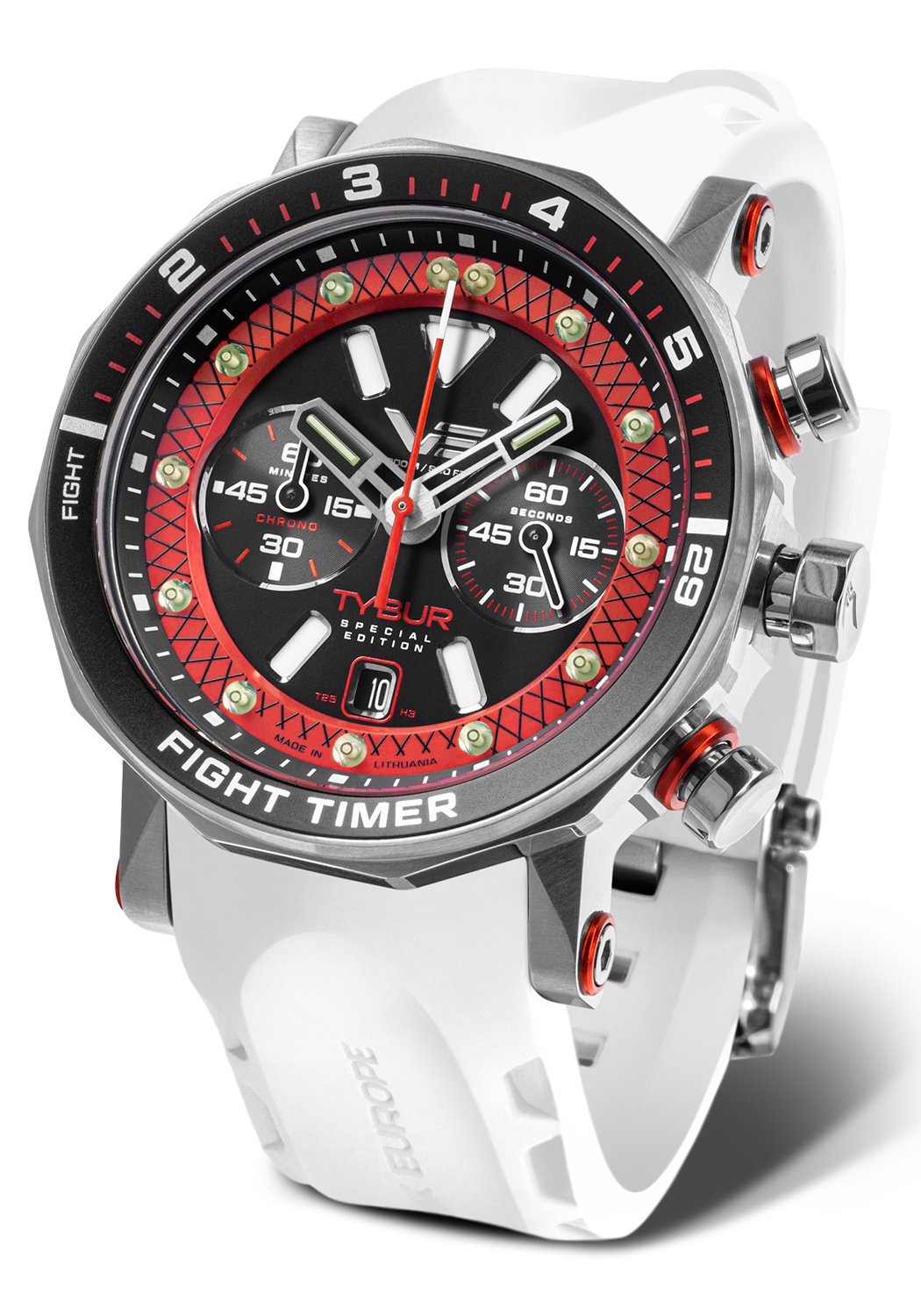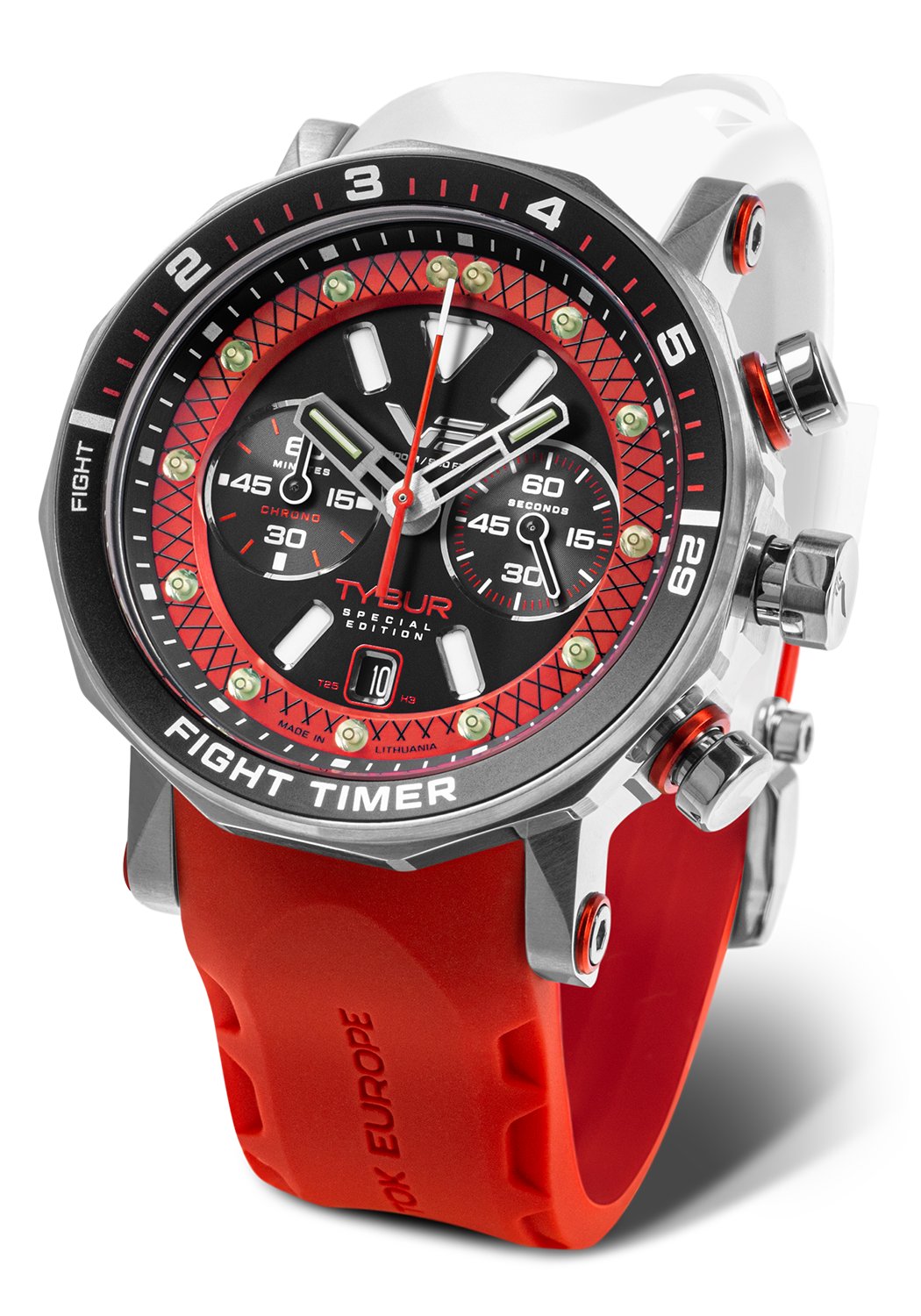 Vostok Europe Tybur Special Edition 6S21-620A484 je exkluzivní limitovaná edice, která čítá pouhých 100 číslovaných kusů, vytvořená ve spolupráci s mistrem MMA Marcinem Tyburou. Tento sportovní hodinky ohromují dynamickým designem s výraznými červeno-černými akcenty, které symbolizují sílu a odhodlání. Díky preciznímu chronografu se skvěle hodí do extrémních podmínek, spojujíc estetiku s funkčností.