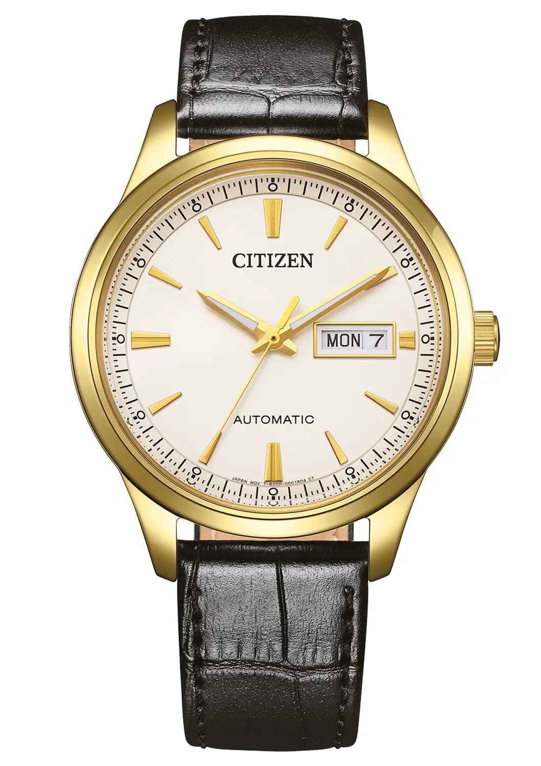 Design, který přitahuje pozornost. Model NY4059-09AC zaujme elegantním ocelovým pouzdrem ze žlutého zlata a koženým řemínkem, které mu dodávají vytříbený charakter. Jeho největší vizuální předností je světlý ciferník s jemným vzorem, který efektivně odráží světlo a vytváří tak dynamický a hluboký efekt.