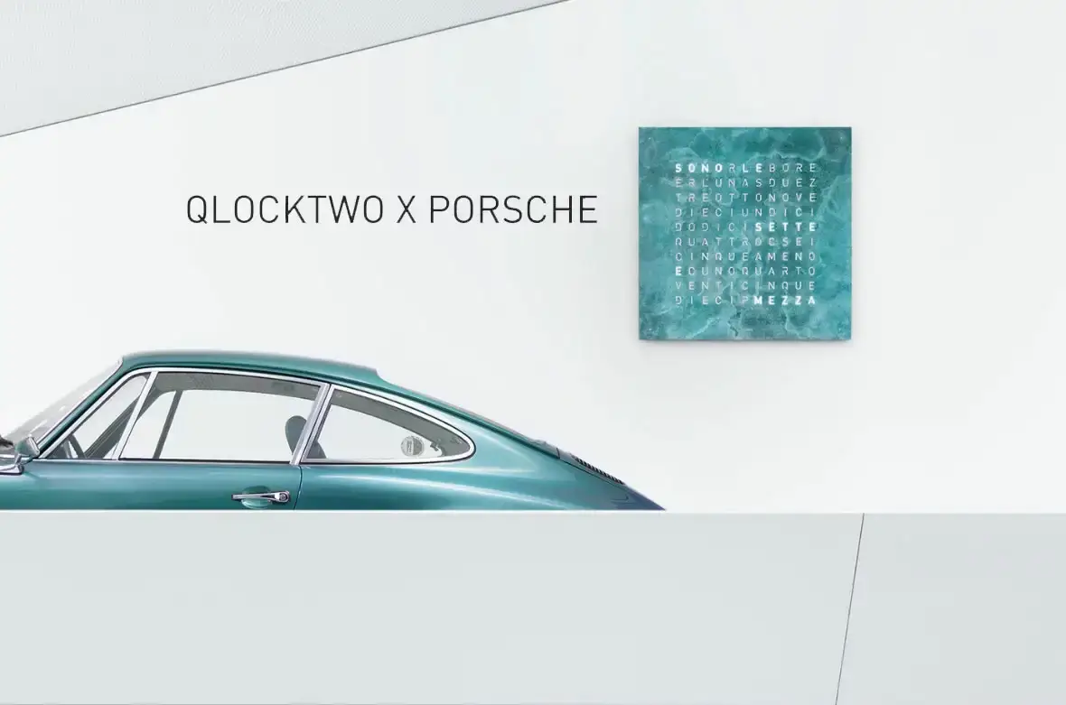 Inspirativní, inovativní a stylové slovní hodiny Qlocktwo, klasifikované jako užité umění, představují současnou ikonu designových nástěnných hodin. Podobně jako luxusní automobily Porsche, které jsou ikonou automobilového průmyslu díky dechberoucímu designu a výkonu. Oba subjekty vytvářejí nadčasové a bezkonkurenčně jedinečné koncepty, které se nyní spojují v kampani s hashtagem #iconstogether, ilustrované jedinečným fotografickým setem v muzeu Porsche.