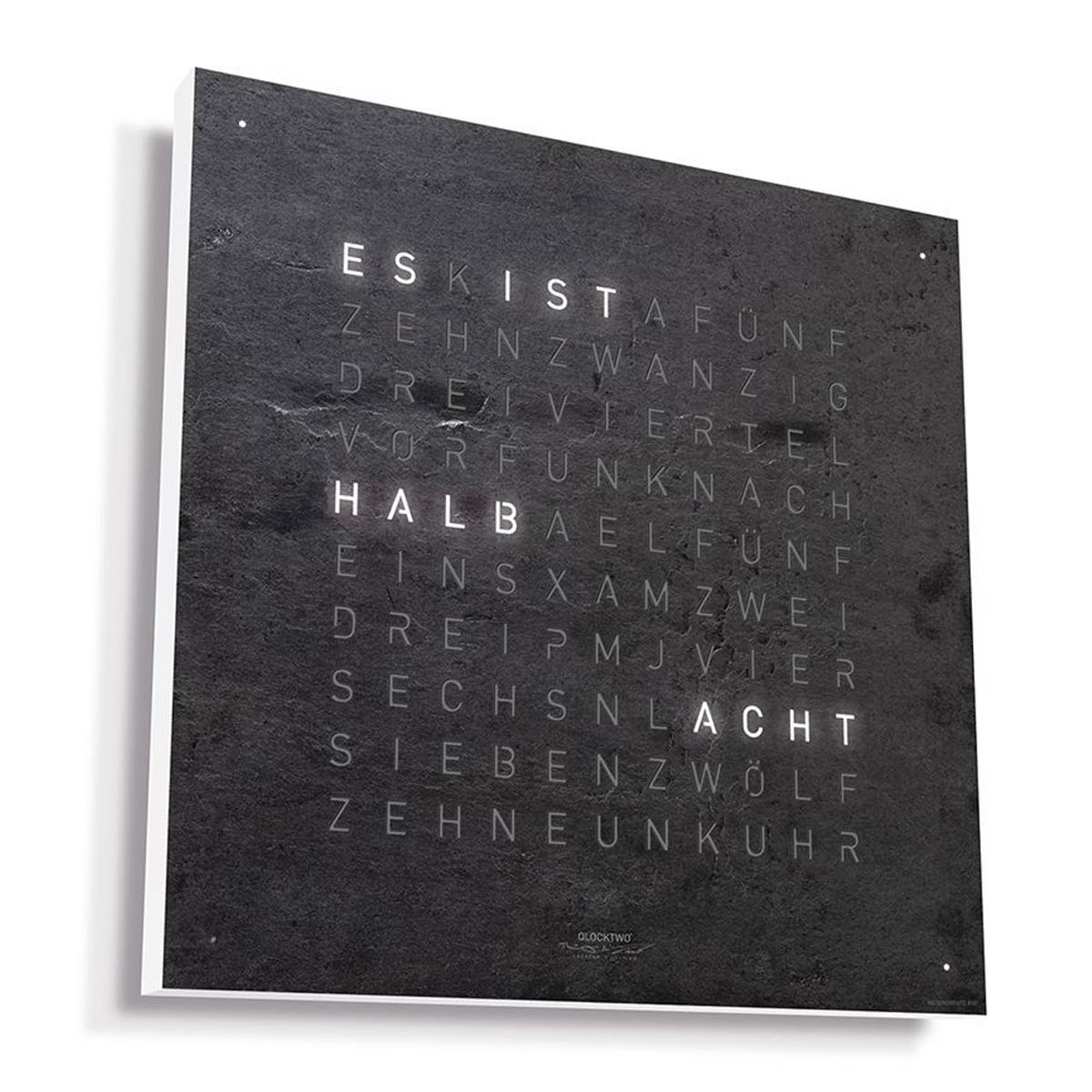 Hodiny Qlocktwo si získávají srdce stylových domácností a interiérů po celém světě. Tato neobvyklá forma prezentace času vzbuzuje velký zájem ve světě designu a technologie spojující kvalitu s jedinečným stylem a neobvyklými materiály. Čas se místo tradičních čísel zobrazuje slovy. Konstrukce hodin se skládá ze dvou částí. Základna obsahující elektroniku a vyměnitelný přední panel namontovaný magneticky, bez použití jakýchkoli nástrojů nebo šroubů. Právě kombinace fonetického zobrazení času s jedinečným materiálem a designem předního panelu je nádhernou kvintesencí myšlenky času v našich domovech a kancelářích.