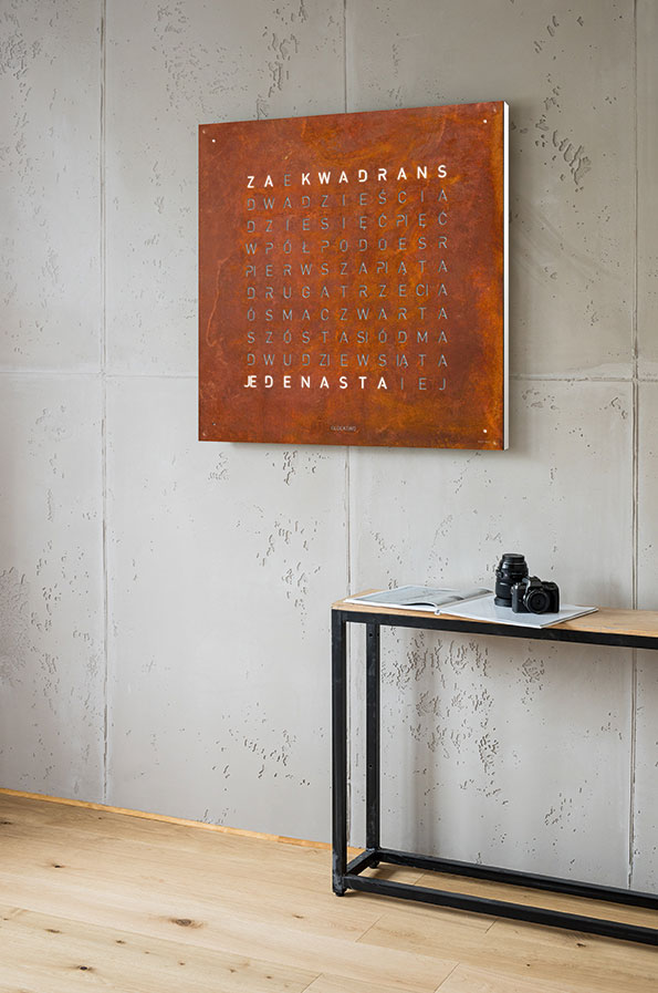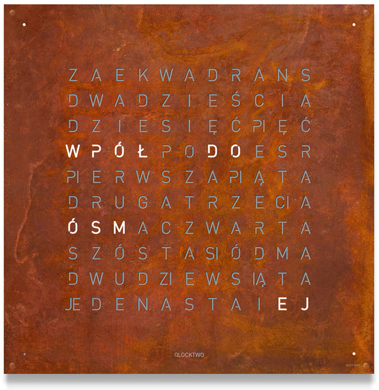 Hodiny Qlocktwo si získávají srdce stylových domácností a interiérů po celém světě. Tato neobvyklá forma zobrazení času vyvolává velký zájem ve světě designu a technologií, které spojují kvalitu s jedinečným stylem a neobvyklými materiály. Čas je zobrazován slovy, nikoliv tradičními číslicemi. Konstrukce hodin se skládá ze dvou částí: základny obsahující elektroniku a vyměnitelného předního panelu, který se připevňuje magneticky – bez použití nástrojů nebo šroubů. Právě spojení fonetického zobrazení času s jedinečným materiálem a designem čelního panelu tvoří fascinující esenci myšlenky na čas v našich domovech a kancelářích.