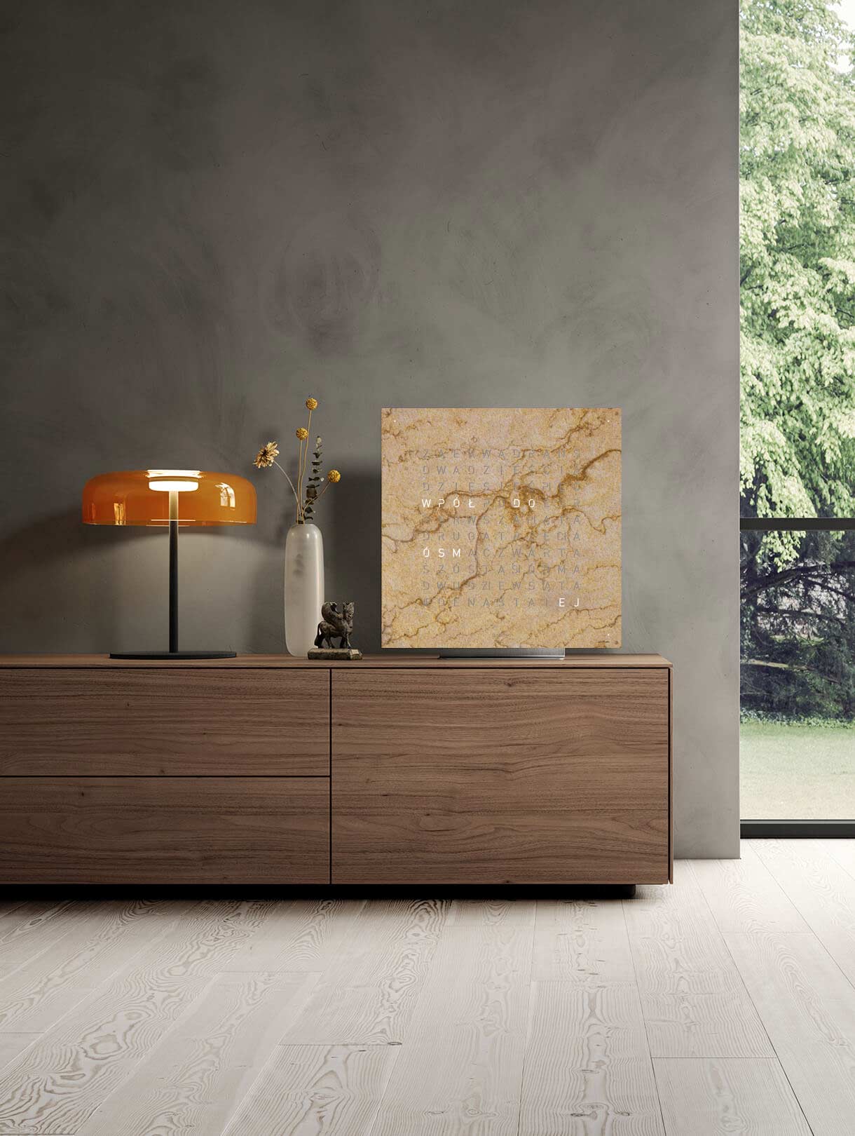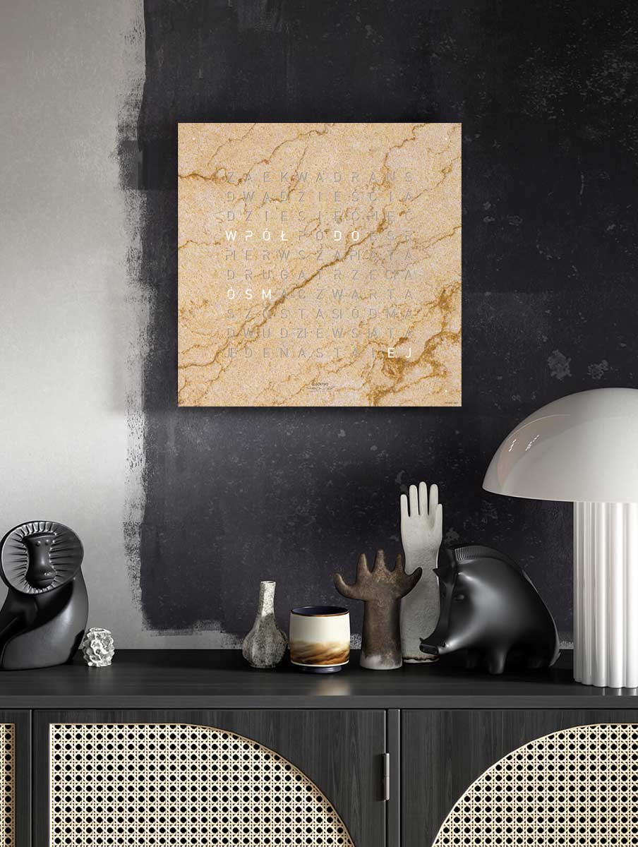 Hodiny Qlocktwo Earth 45 Desert QT4PLDS v polské jazykové verzi.