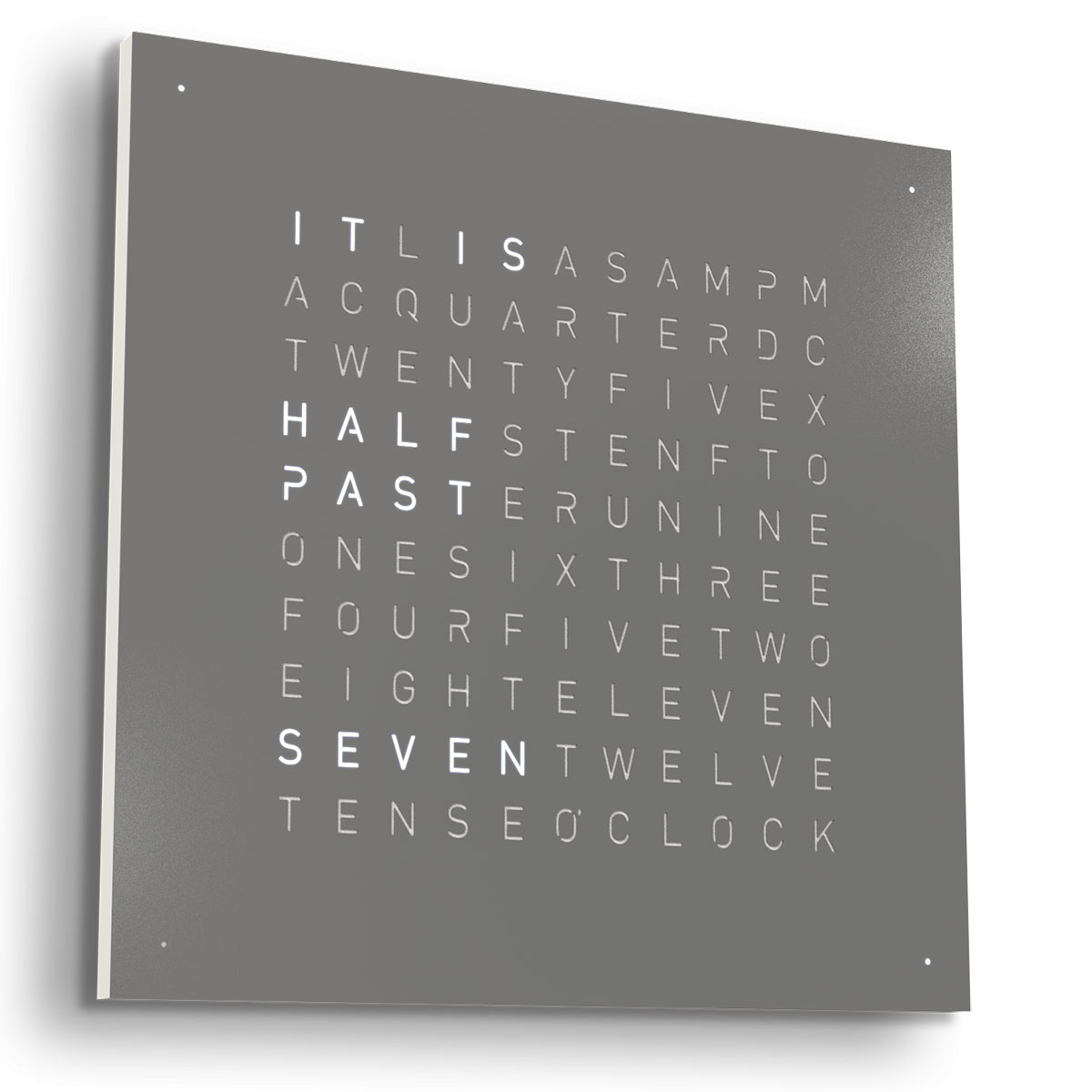 Novinka na světovém trhu! Naprosto nový trend mezi hodinami současného designu. Exkluzivní, prestižní design, originální nápad na prezentaci současné doby, který si zamilujete na první pohled. Už žádné tradiční tipy. Qlocktwo je německá výroba prezentující zcela jiný pohled na čas. Qlocktwo zobrazuje čas typograficky (na výběr z více než 20 jazyků) v kombinaci se čtyřmi rohovými osvětlenými body, které symbolizují jednotlivé minuty. Slova na číselníku se mění každých 5 minut. Senzory automaticky přizpůsobují světlo vnějším světelným podmínkám, díky čemuž snadno odečtete čas v noci nebo při silném slunci uvnitř. Jas můžete také upravit ručně.