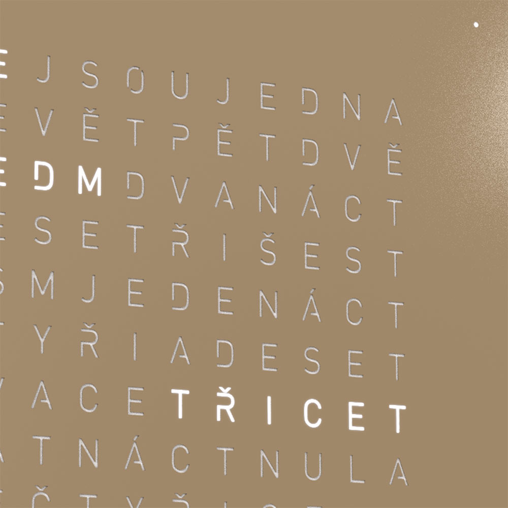 Nástěnné hodiny, které lze umístit i na stojánek Qlocktwo Earth 45 Hazelnut. Exkluzivní, prestižní design, originální nápad na prezentaci aktuální doby, který si zamilujete na první pohled. Už žádné tradiční tipy. Qlocktwo je německý výrobce s úplně jiným pohledem na čas. Qlocktwo zobrazuje čas typograficky v kombinaci se čtyřmi rohovými osvětlenými tečkami symbolizujícími jednotlivé minuty. Slova na číselníku se mění každých 5 minut. Senzory automaticky přizpůsobují světlo vnějším světelným podmínkám, takže můžete snadno odečítat čas v noci nebo když je uvnitř silné sluneční světlo. Jas lze také nastavit ručně.