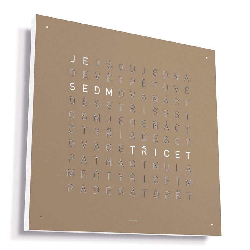 Hodiny Qlocktwo Earth 45 Hazelnut, Jazyk: CZ Czech
