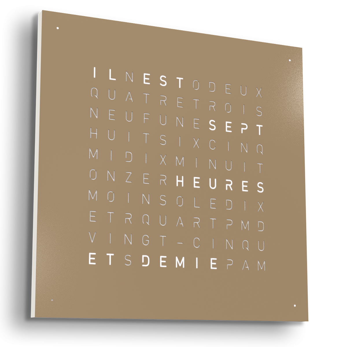 Hodiny Qlocktwo Earth 45 Hazelnut, Jazyk: FR French