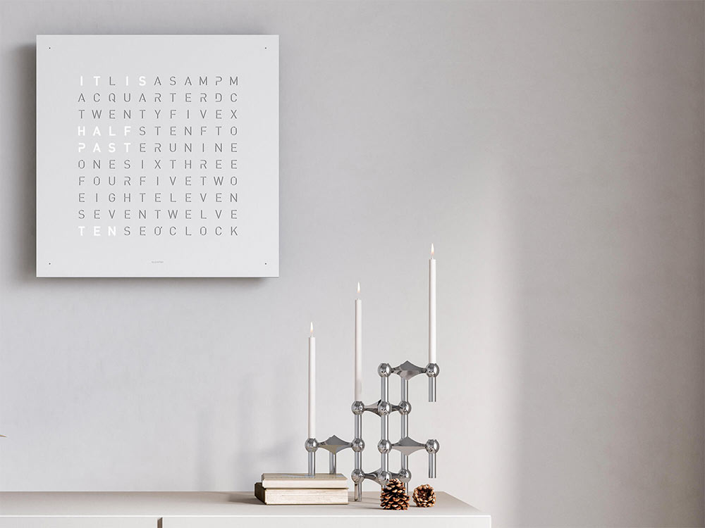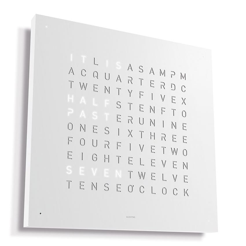 Nástěnné hodiny, které lze umístit i na stojánek Qlocktwo Earth 45 White Pepper. Exkluzivní, prestižní design, originální nápad na prezentaci aktuální doby, který si zamilujete na první pohled. Už žádné tradiční tipy. Qlocktwo je německý výrobce s úplně jiným pohledem na čas. Qlocktwo zobrazuje čas typograficky v kombinaci se čtyřmi rohovými osvětlenými tečkami symbolizujícími jednotlivé minuty. Slova na číselníku se mění každých 5 minut. Senzory automaticky přizpůsobují světlo vnějším světelným podmínkám, takže můžete snadno odečítat čas v noci nebo když je uvnitř silné sluneční světlo. Jas lze také nastavit ručně.