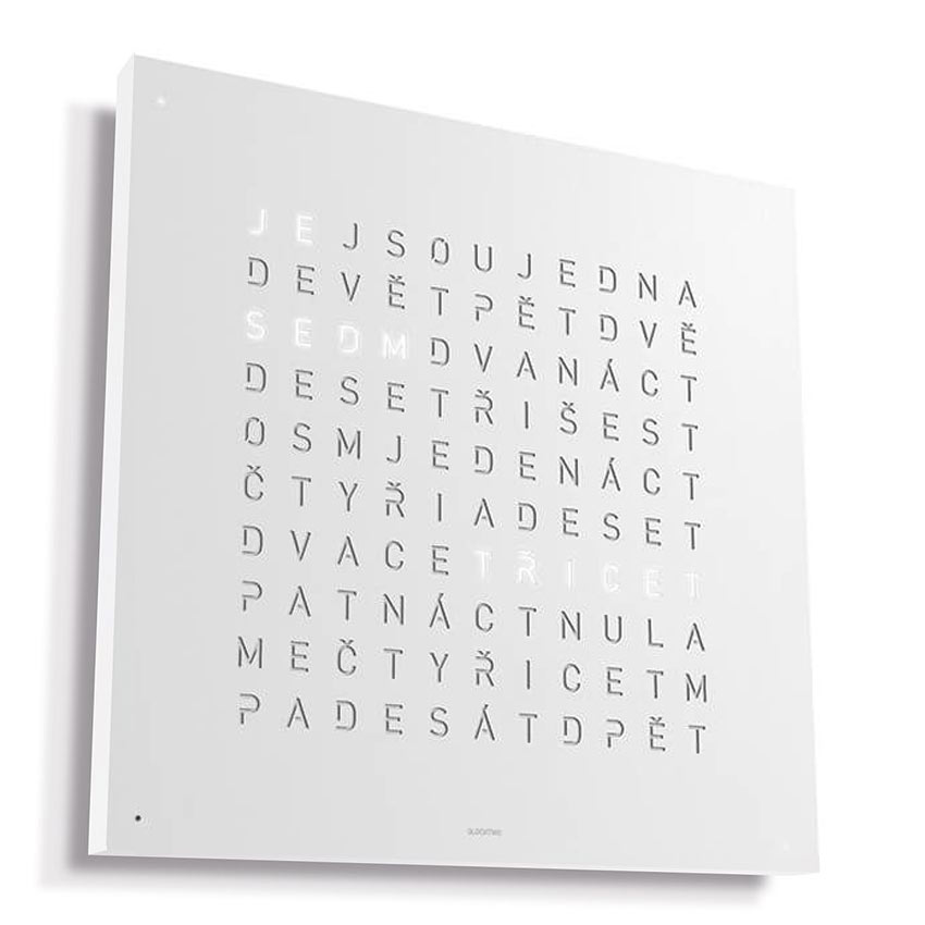 Nástěnné hodiny, které lze umístit i na stojánek Qlocktwo Earth 45 White Pepper. Exkluzivní, prestižní design, originální nápad na prezentaci aktuální doby, který si zamilujete na první pohled. Už žádné tradiční tipy. Qlocktwo je německý výrobce s úplně jiným pohledem na čas. Qlocktwo zobrazuje čas typograficky v kombinaci se čtyřmi rohovými osvětlenými tečkami symbolizujícími jednotlivé minuty. Slova na číselníku se mění každých 5 minut. Senzory automaticky přizpůsobují světlo vnějším světelným podmínkám, takže můžete snadno odečítat čas v noci nebo když je uvnitř silné sluneční světlo. Jas lze také nastavit ručně.