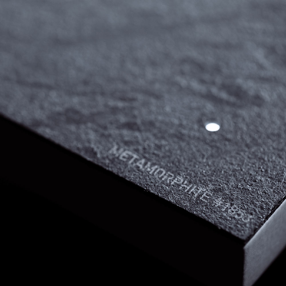 Řada Creator's Edition představuje nejprestižnější kolekci hodin Qlocktwo. Všechny předchozí modely byly založeny na kovu, ale v Qlocktwo Earth 90 Creators Edition Metamorphite máme co do činění s inovativním nápadem využívajícím metamorfovaný plátek skály. Zcela přírodní, s historií Země a geologickými procesy, které ji utvářejí, před 350–400 miliony let. Každý přední panel je mírně odlišný, vzhledem k povaze materiálu, každý ručně vyráběný v továrně ve Schwäbisch Gmünd v Bádensku-Württembersku.