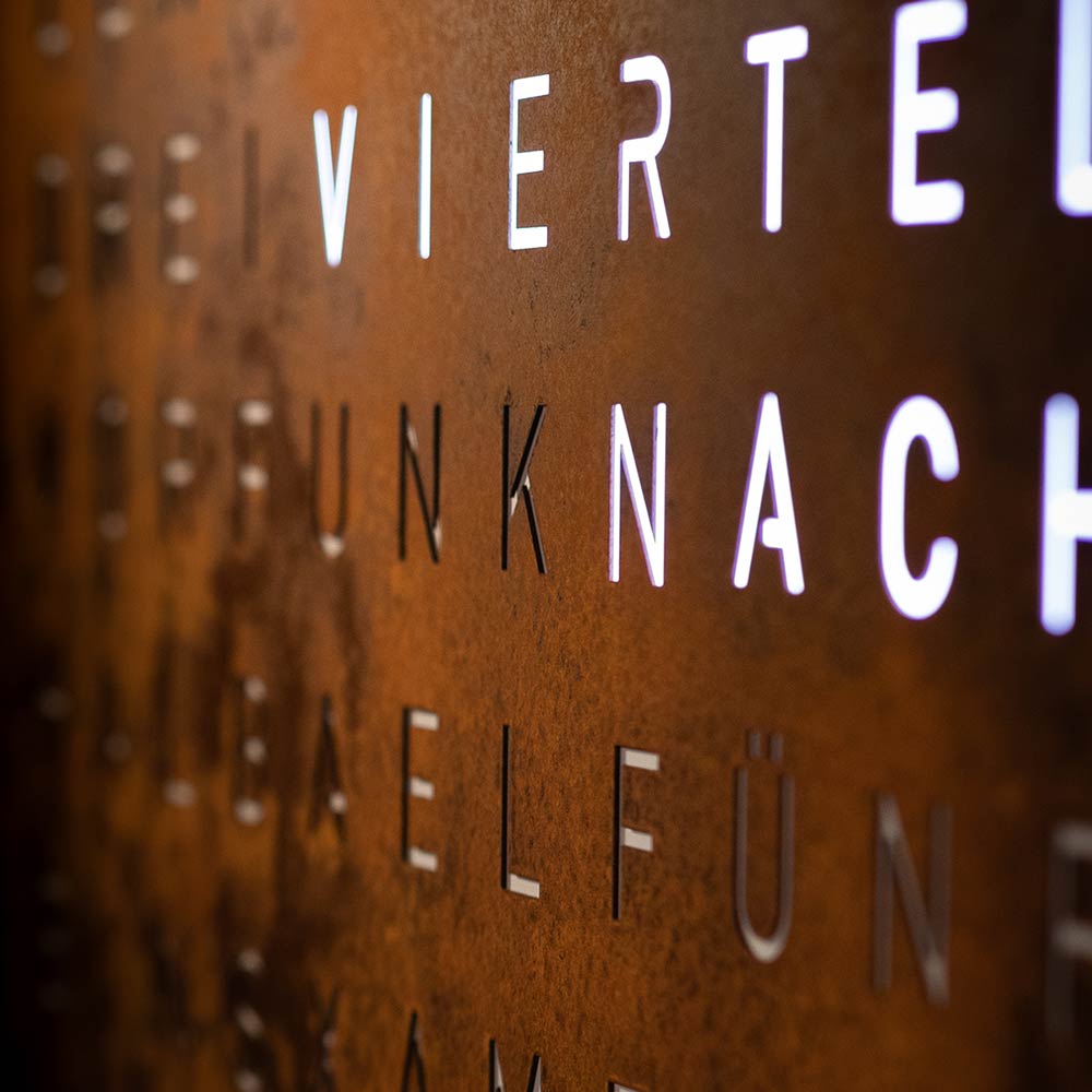 Nástěnné / stojací hodiny Qlocktwo Large 90 x 90 cm Creator's Edition Rust Design z nerezové oceli.