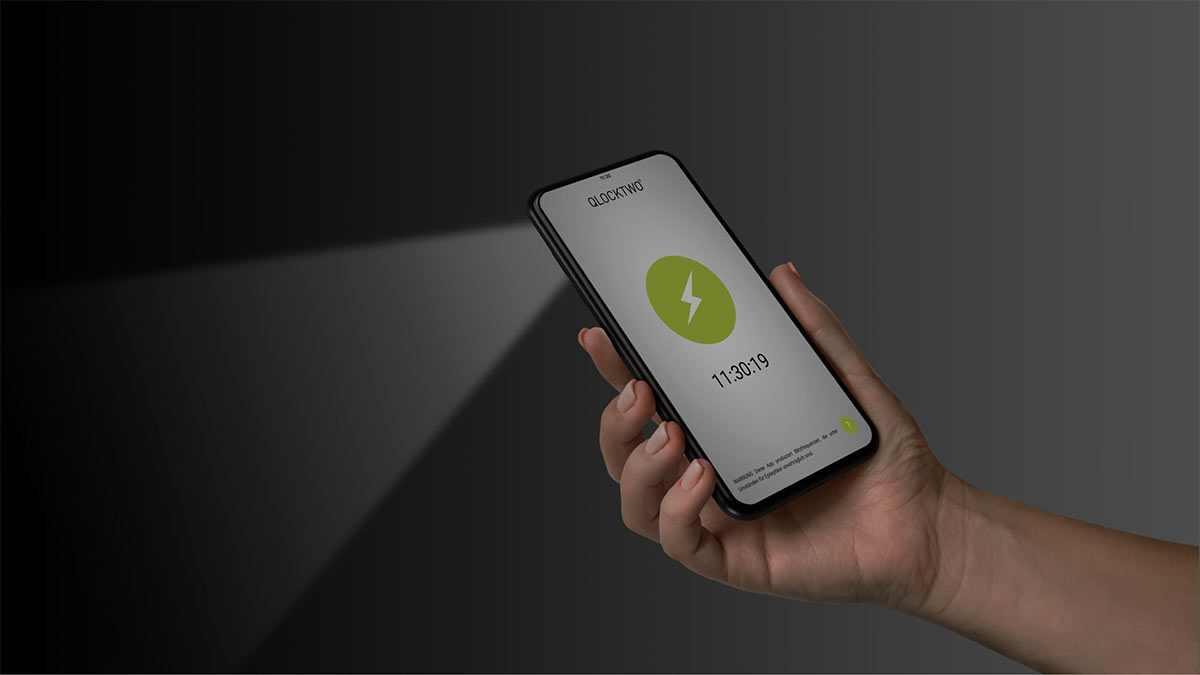 Jak nastavit hodiny Qlocktwo? Toho lze dosáhnout dvěma způsoby. Ručně pomocí tlačítek na zadní straně hodin nebo automaticky pomocí smartphonu. V druhém případě si jednoduše stáhněte bezplatnou aplikaci Flashsetter dostupnou pro Android a iOS, spusťte ji a použijte tlačítko „flash“. Aktuální čas se automaticky přenese z vašeho smartphonu do vašeho Qlocktwo.