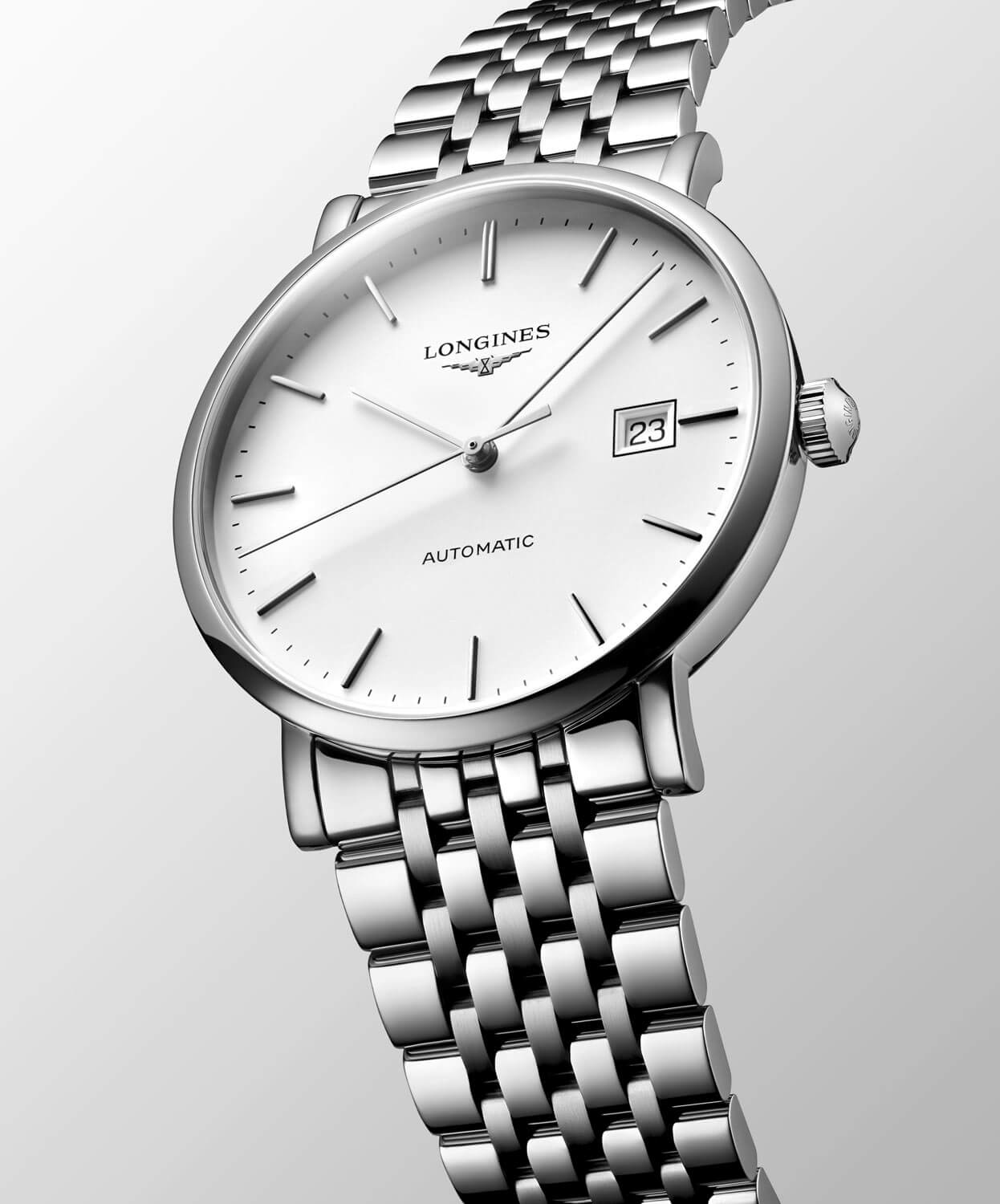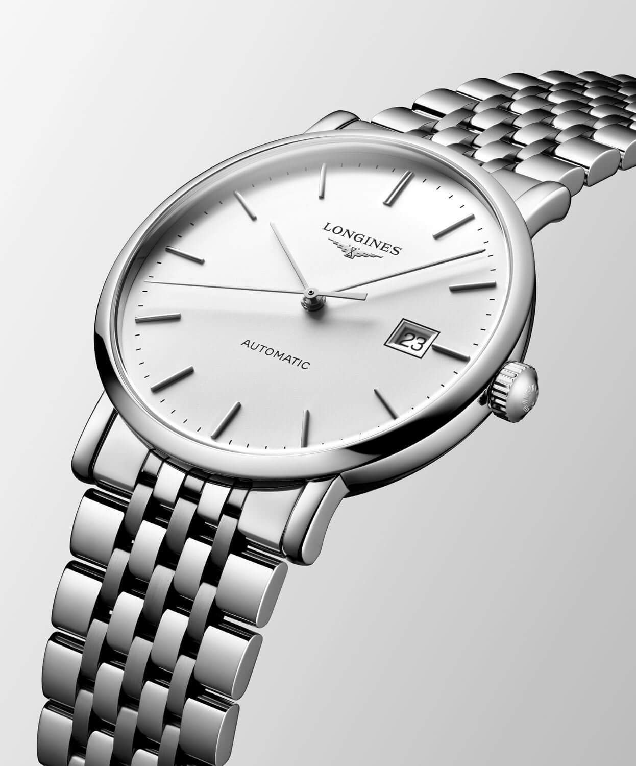V hodinkách byl použit švýcarský automatický strojek Longines L888, viditelný přes transparentní safírové víko. Kalibr pracuje s frekvencí 25 200 kyvů za hodinu a nabízí 72 hodin rezervy chodu, přičemž křemíková vlásková pružina zvyšuje jeho odolnost vůči magnetickému poli a opotřebení. Pouzdro je vyrobeno z ušlechtilé oceli a spojeno s náramkem s kombinovanou saténovou a leštěnou povrchovou úpravou – tento konstrukční detail zajišťuje výjimečné pohodlí při nošení a zároveň podtrhuje kvalitu provedení v každém milimetru.