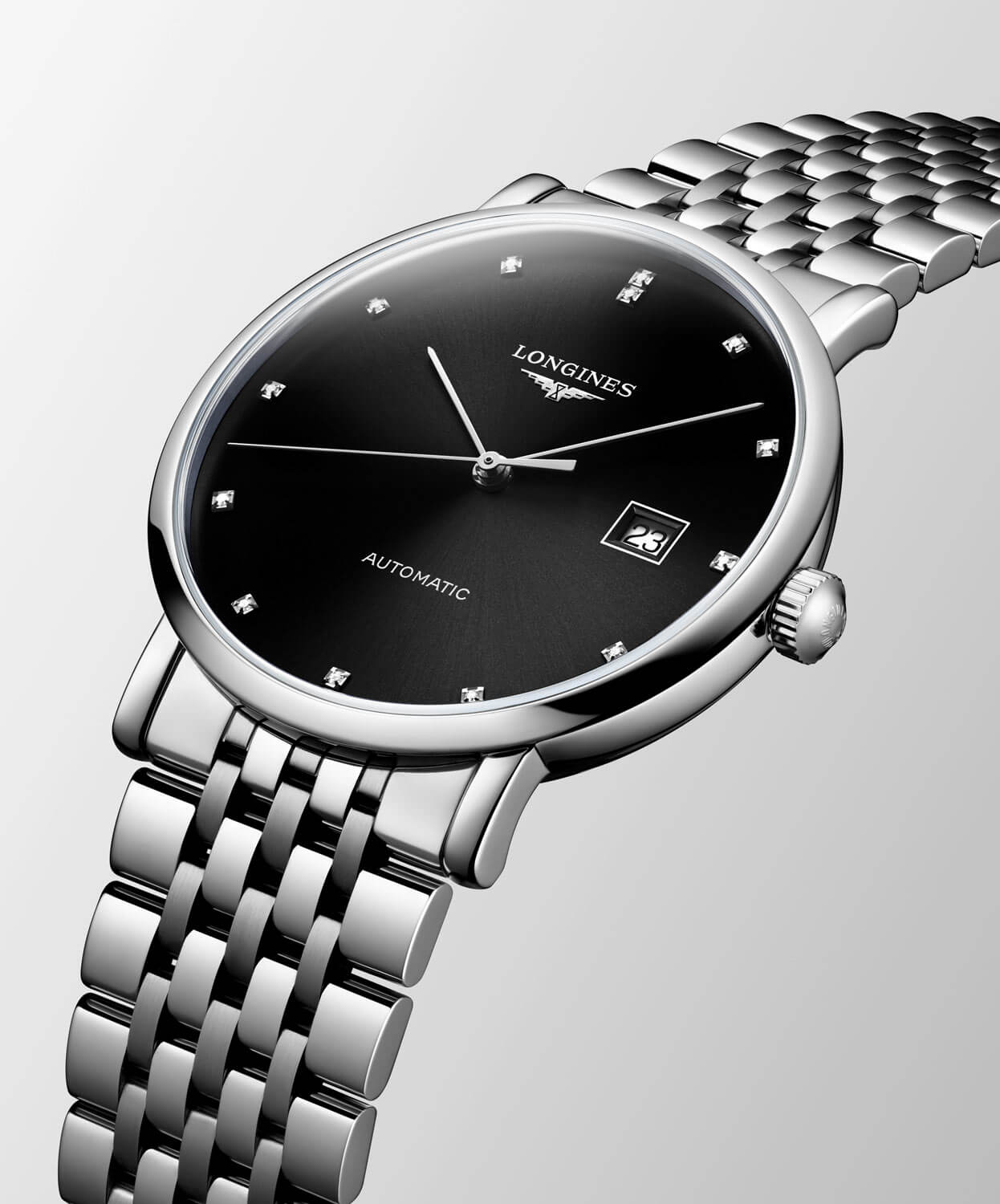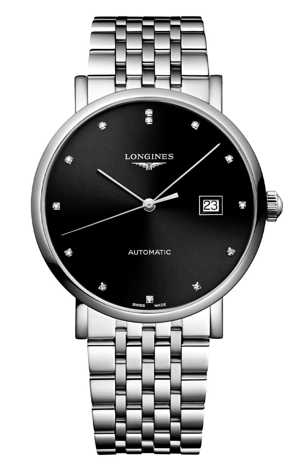 Vyladěné k dokonalosti a zároveň překvapivě střídmé ve své formě – tyto pánské hodinky s diamanty Longines Elegant Gent L4.910.4.59.6 patří k nejvytříbenějším modelům kolekce Longines Elegant. Model o průměru 39 mm spojuje klasické proporce s moderní elegancí, která se ideálně hodí k business i večerním outfitům. Diamantové indexy zasazené do hluboce černého ciferníku působí jako světelný akcent – téměř nepostřehnutelný ve stínu, ale působivý, jakmile na ně dopadne světlo.