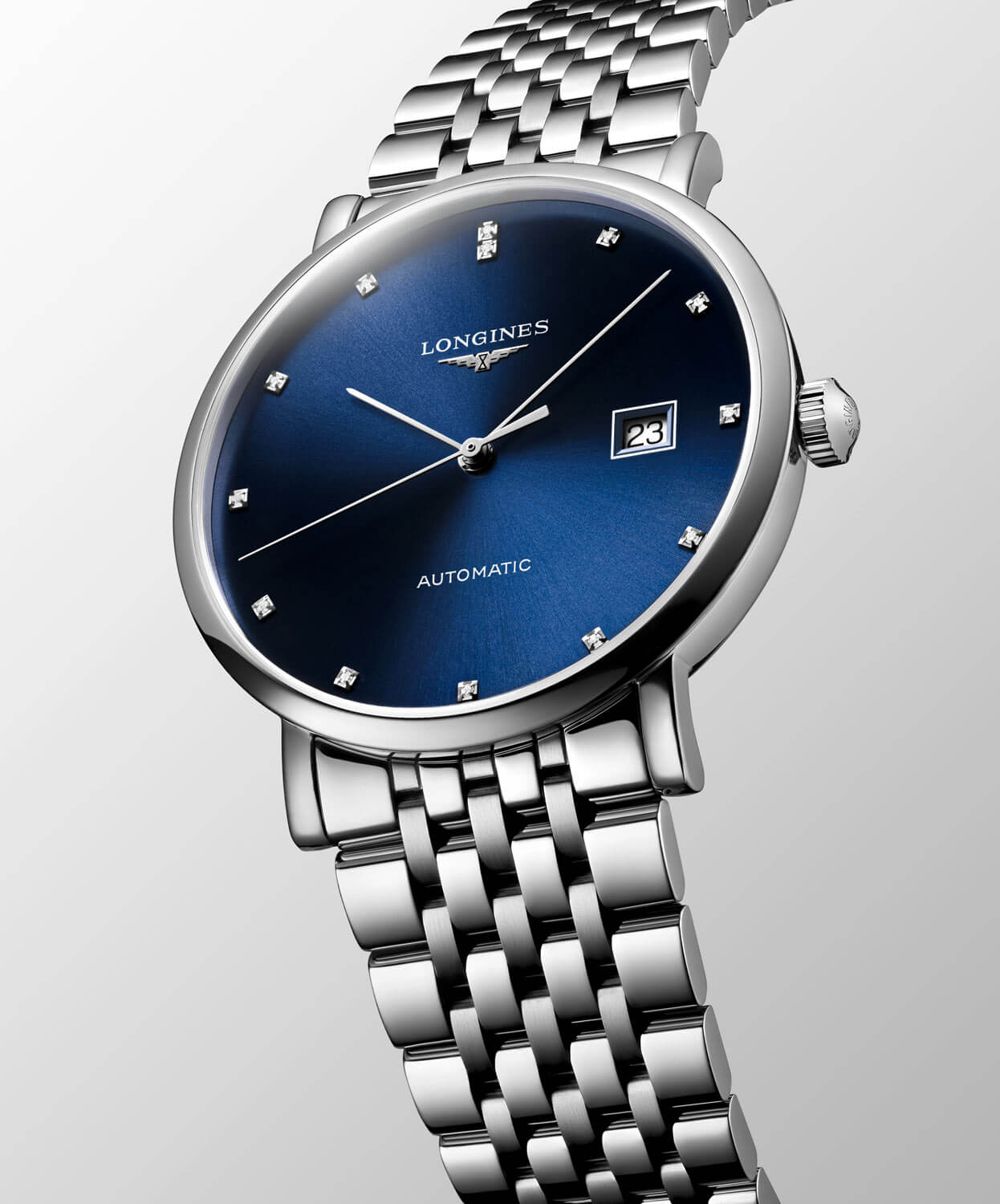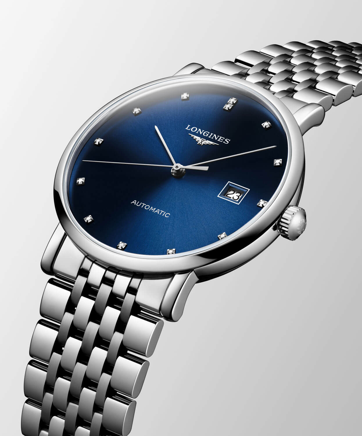 Vyladěné k dokonalosti a zároveň překvapivě střídmé ve své formě – tyto pánské hodinky s diamanty Longines Elegant Gent L4.910.4.99.6 patří k nejvytříbenějším modelům kolekce Longines Elegant. Model o průměru 39 mm spojuje klasické proporce s moderní elegancí, která se ideálně hodí k business i večerním outfitům. Diamantové indexy zasazené do hluboce modrého ciferníku působí jako světelný akcent – téměř nepostřehnutelný ve stínu, ale působivý, jakmile na ně dopadne světlo.