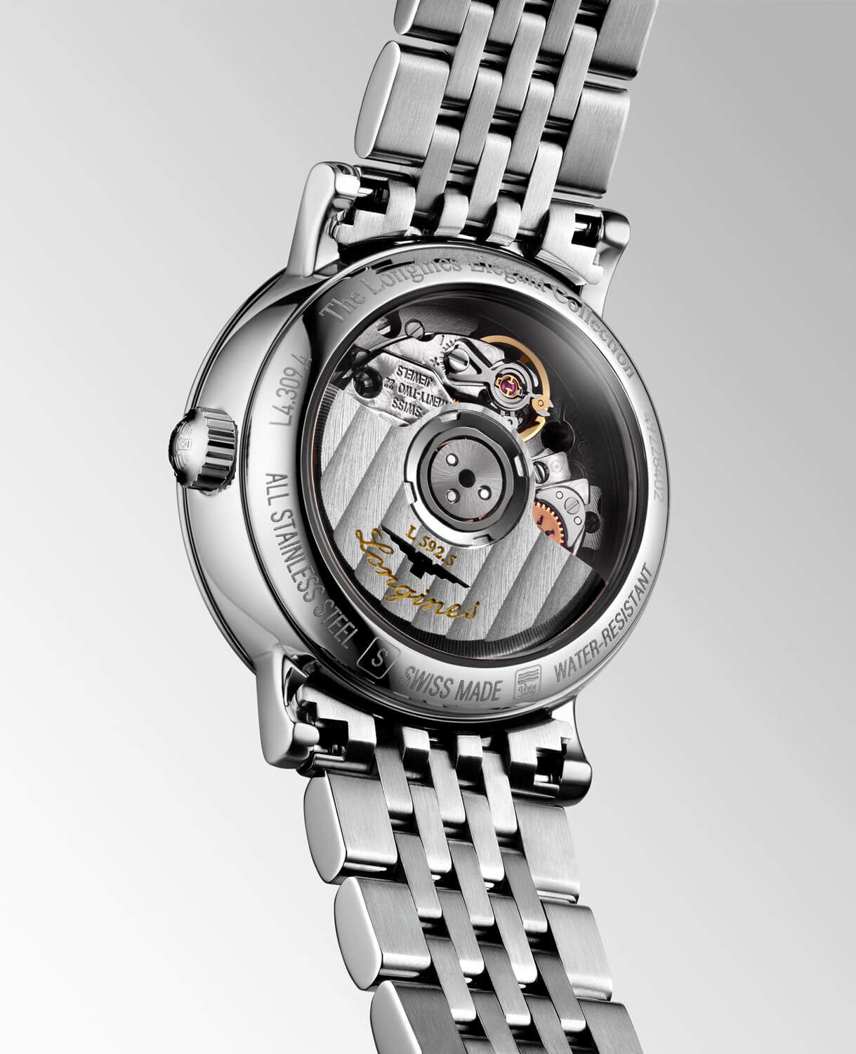 Srdcem hodinek je automatický kalibr Longines L592, viditelný skrze transparentní víko – řešení oceňované milovnicemi klasického hodinářství. Tento kalibr pracuje s frekvencí 28 800 kyvů za hodinu, nabízí až 45 hodin rezervy chodu a imponuje kvalitou zpracování patrnou i v těch nejmenších komponentech. Štíhlé 25mm pouzdro je vyrobeno z nerezové ušlechtilé oceli a doplněno náramkem s vyváženou konstrukcí, jehož leštěné a saténové články vytvářejí elegantní celek – praktický a mimořádně pohodlný při každodenním nošení.