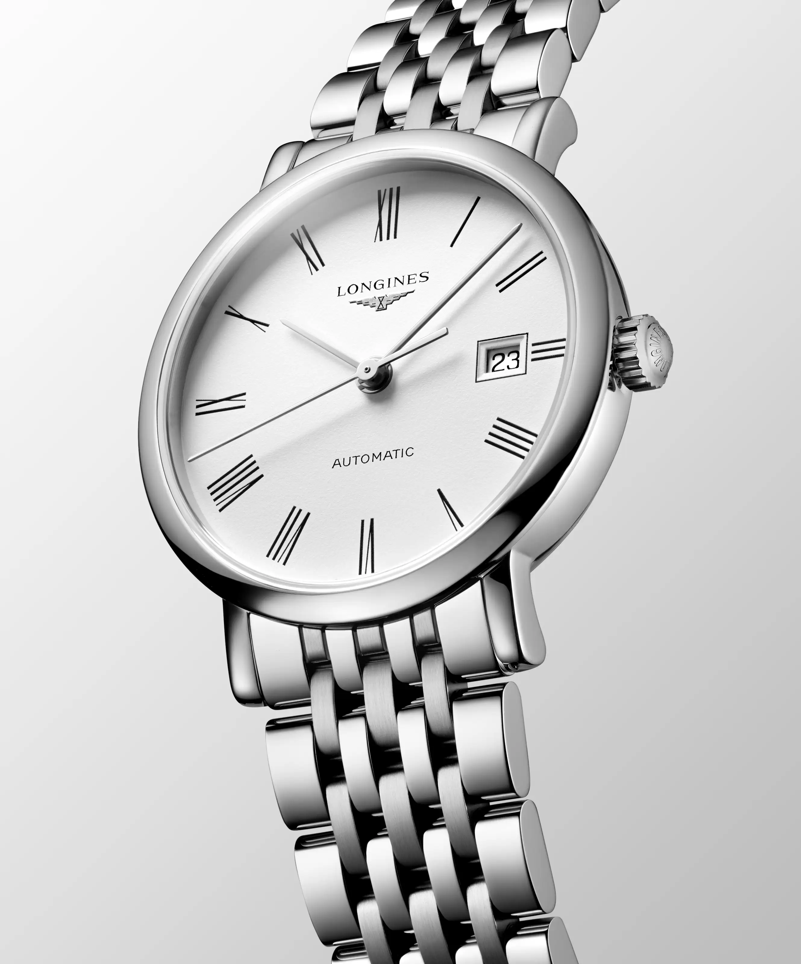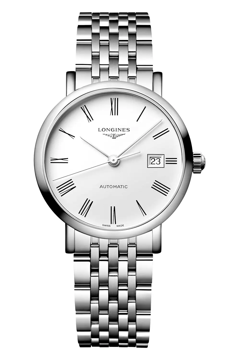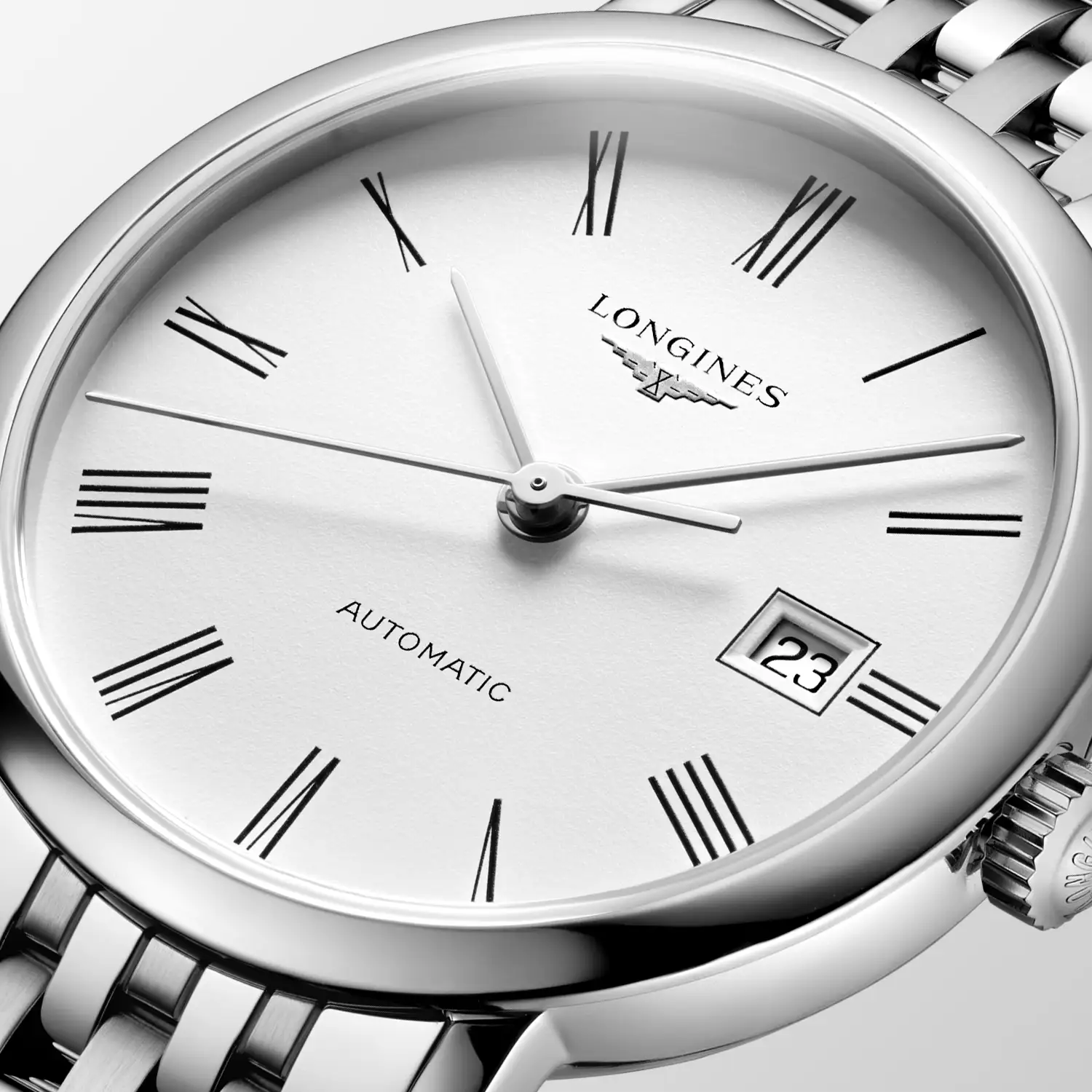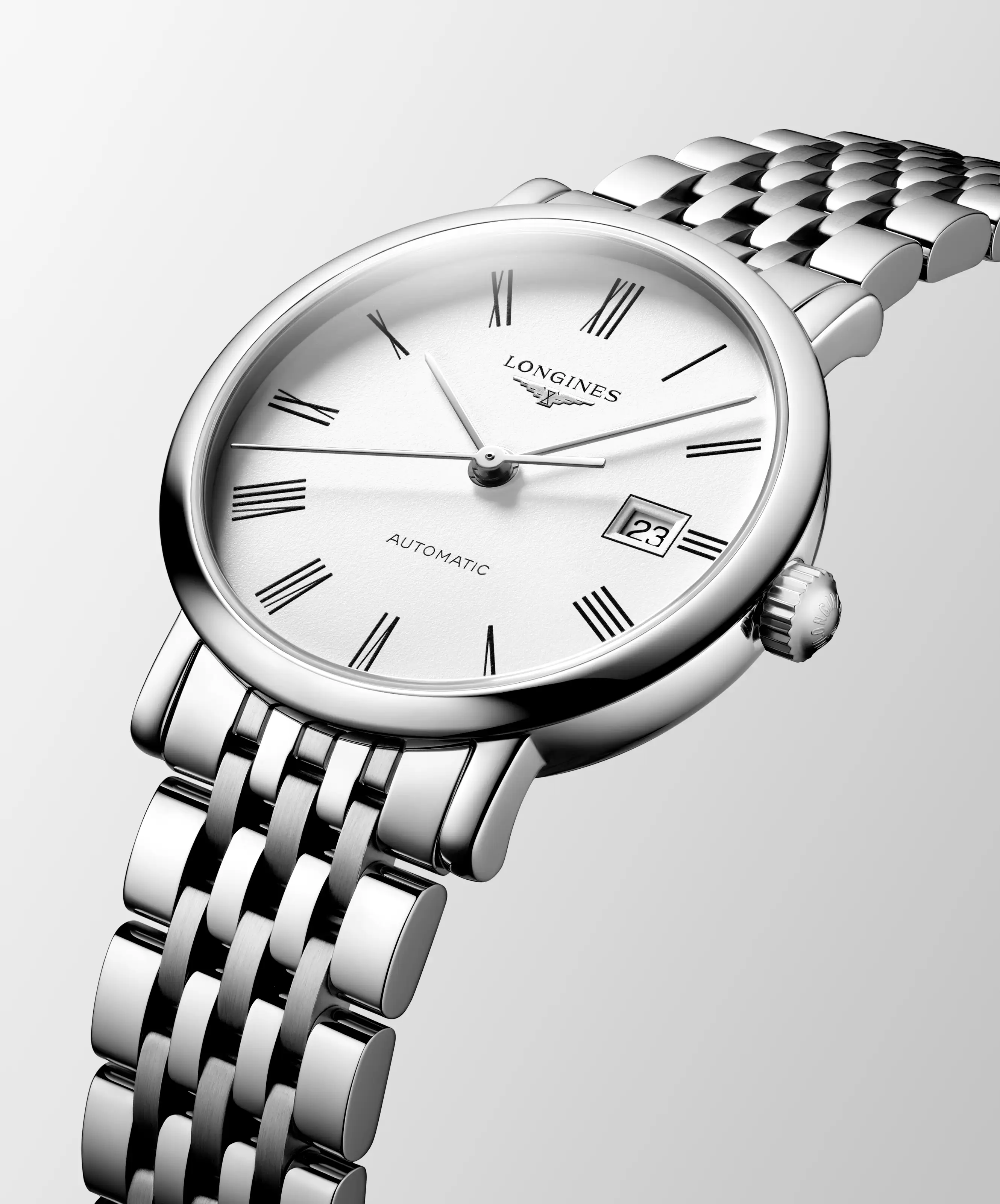 Na první pohled strohý, ve skutečnosti však plný ženského citu pro styl. Prezentované automatické dámské hodinky Longines Elegant Lady L4.310.4.18.6 jsou moderní interpretací nadčasové elegance zakořeněné ve švýcarském hodinářství. Jemné pouzdro o průměru 29 mm v kombinaci s klasickým náramkem z ušlechtilé oceli představuje esenci vyváženého minimalismu – bez zbytečných ozdob, ale s charakterem. Čistý bílý ciferník s římskými číslicemi a precizní datumovkou na třetí hodině tvoří kompozici, která nepotřebuje další slova – stačí jediný pohled.