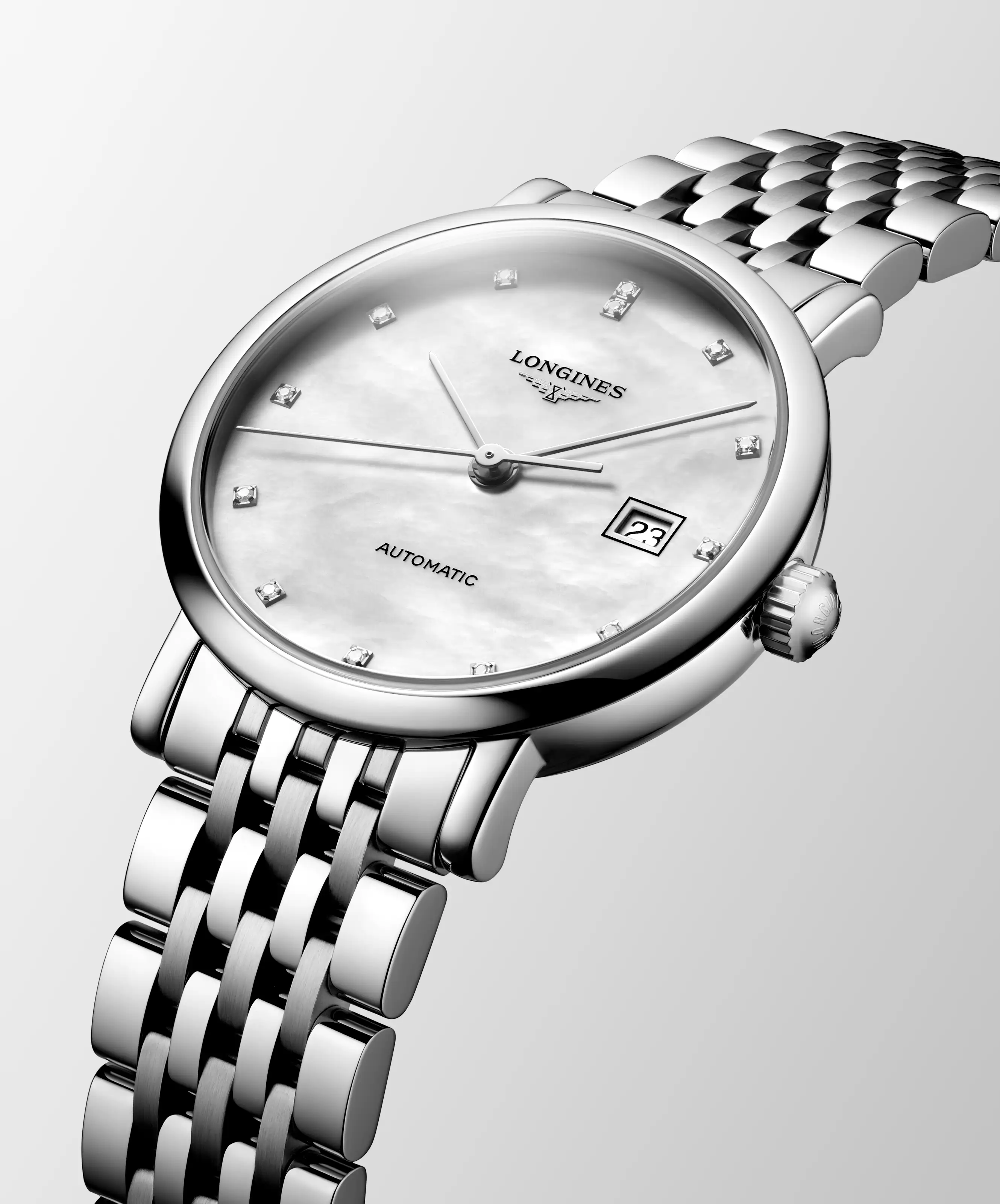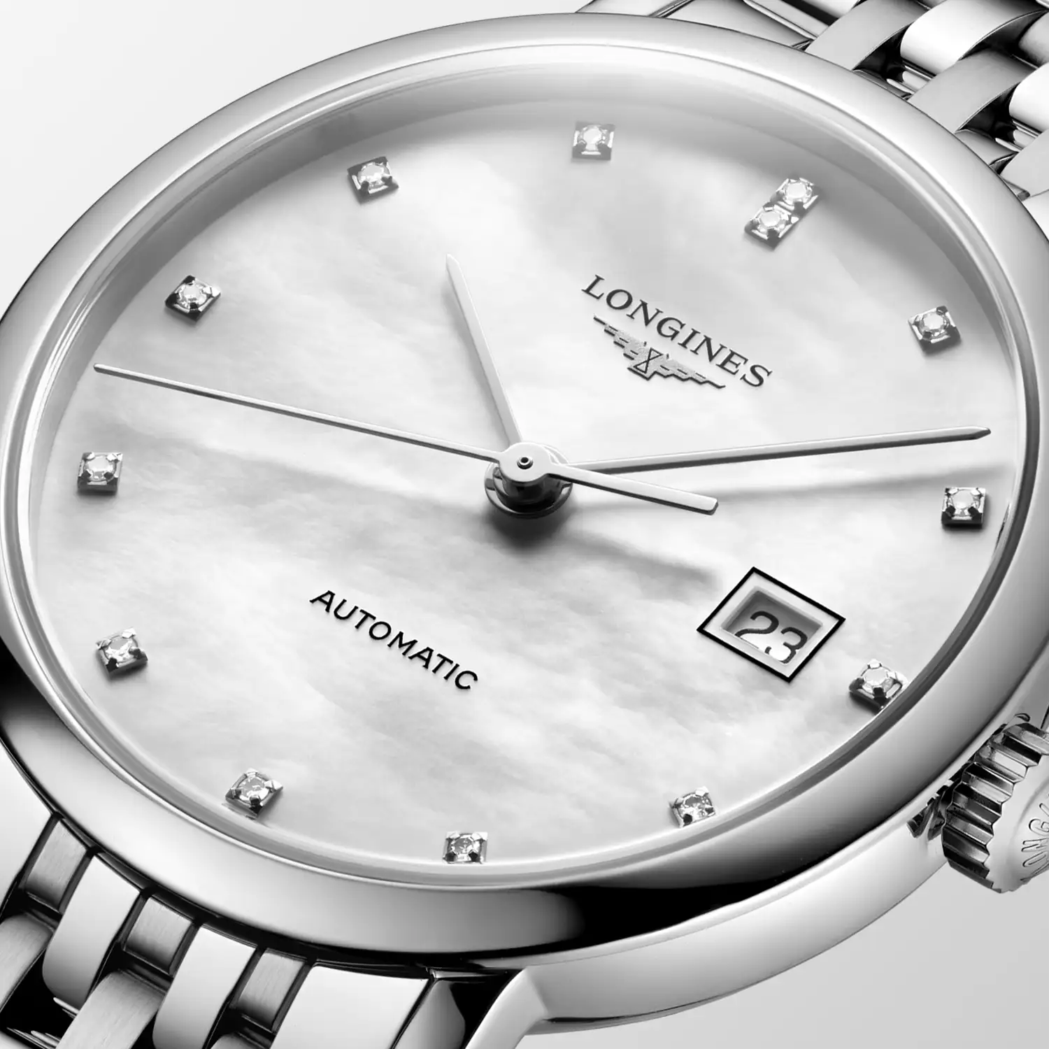 Na první pohled strohý, ve skutečnosti však plný ženského citu pro styl. Prezentované automatické dámské hodinky Longines Elegant Lady L4.310.4.80.6 jsou současnou interpretací nadčasové elegance zakořeněné ve švýcarském hodinářství. Jemné pouzdro o průměru 29 mm, doplněné klasickým náramkem z ušlechtilé oceli, představuje esenci vyváženého minimalismu – bez zbytečných ozdob, ale s charakterem. Unikátní perleťový ciferník s překrásnými třinácti diamanty a precizním datumovým okénkem zasazeným na třetí hodině tvoří kompozici, která nepotřebuje dalších slov – stačí jediný pohled.