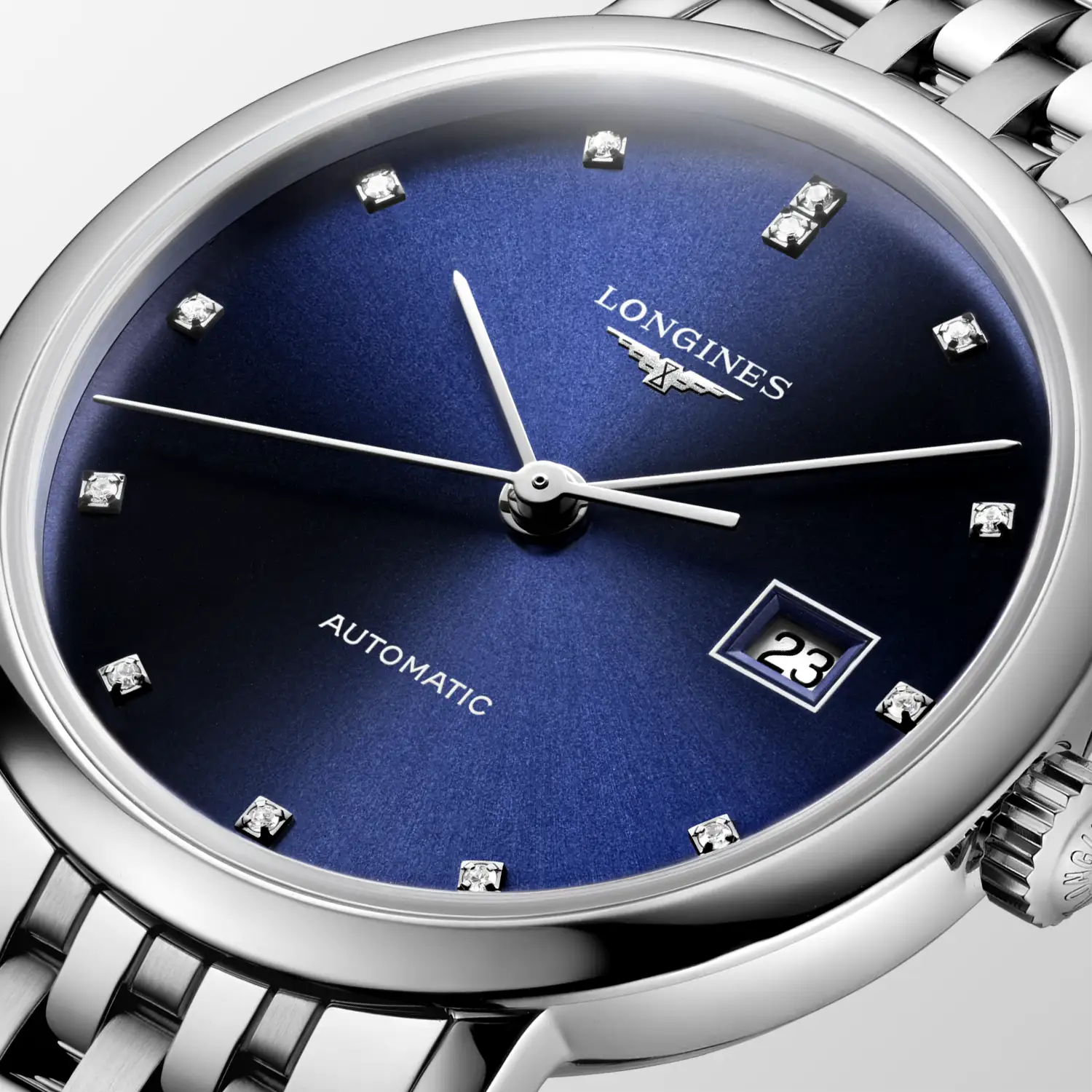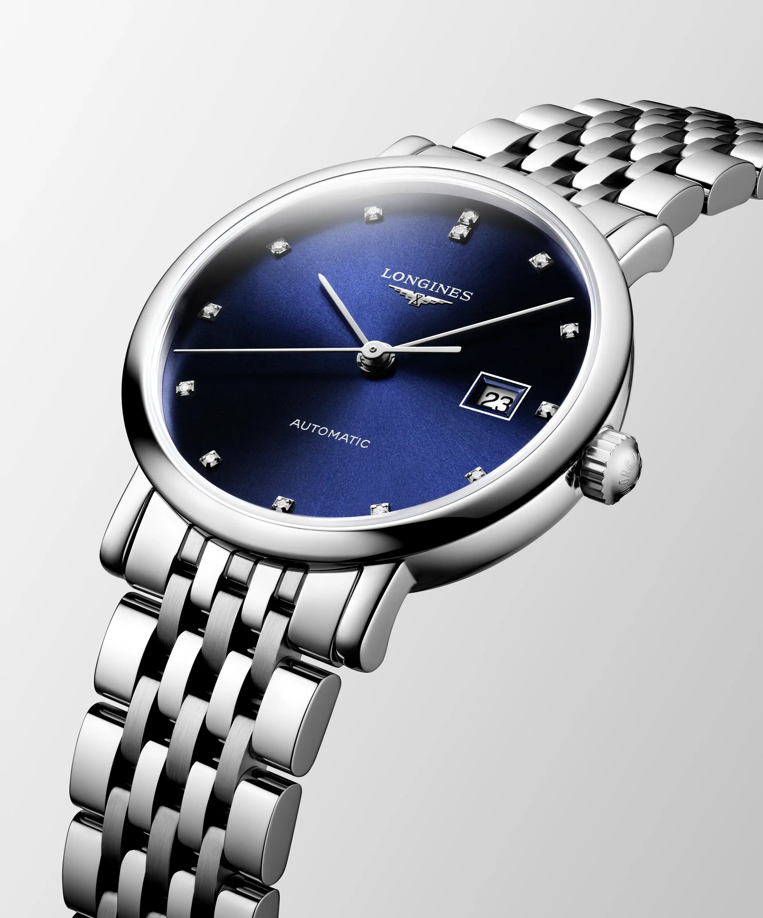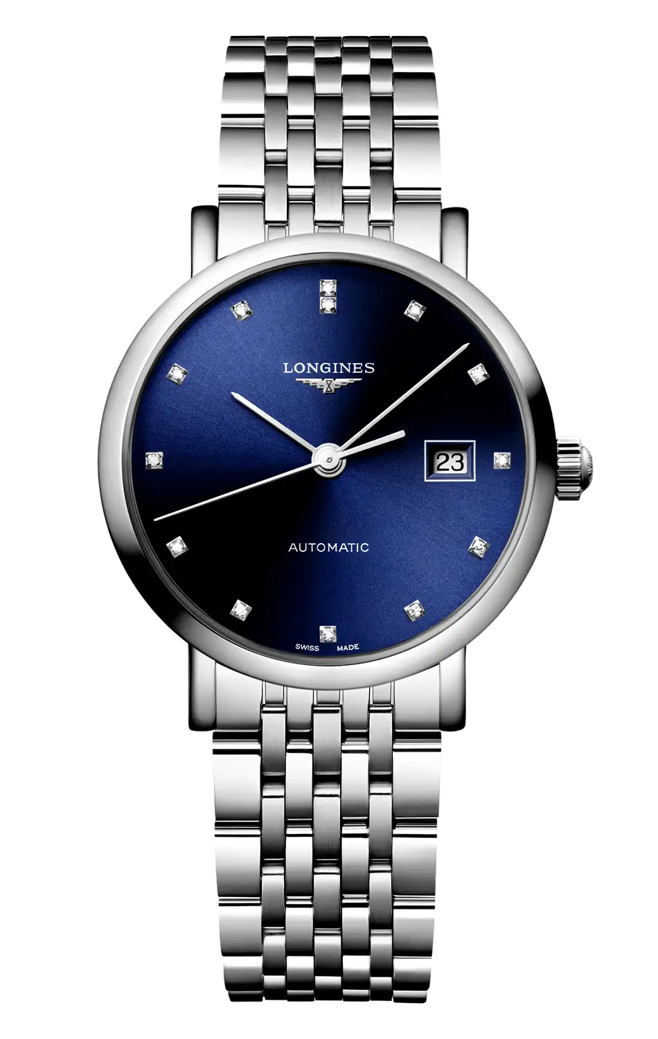 Na první pohled strohý, ve skutečnosti však plný ženského citu pro styl. Prezentovaný automatický dámský hodinky Longines Elegant Lady L4.310.4.90.6 je současnou interpretací nadčasové elegance zakořeněné ve švýcarském hodinářství. Jemné pouzdro o průměru 29 mm, doplněné klasickým ocelovým náramkem, představuje esenci vyváženého minimalismu – bez zbytečných ozdob, ale s charakterem. Čistý, modrý ciferník s nádhernými třinácti diamanty a přesným datumovým okénkem zasazeným na třetí hodině tvoří kompozici, která nepotřebuje další slova – stačí jediný pohled.