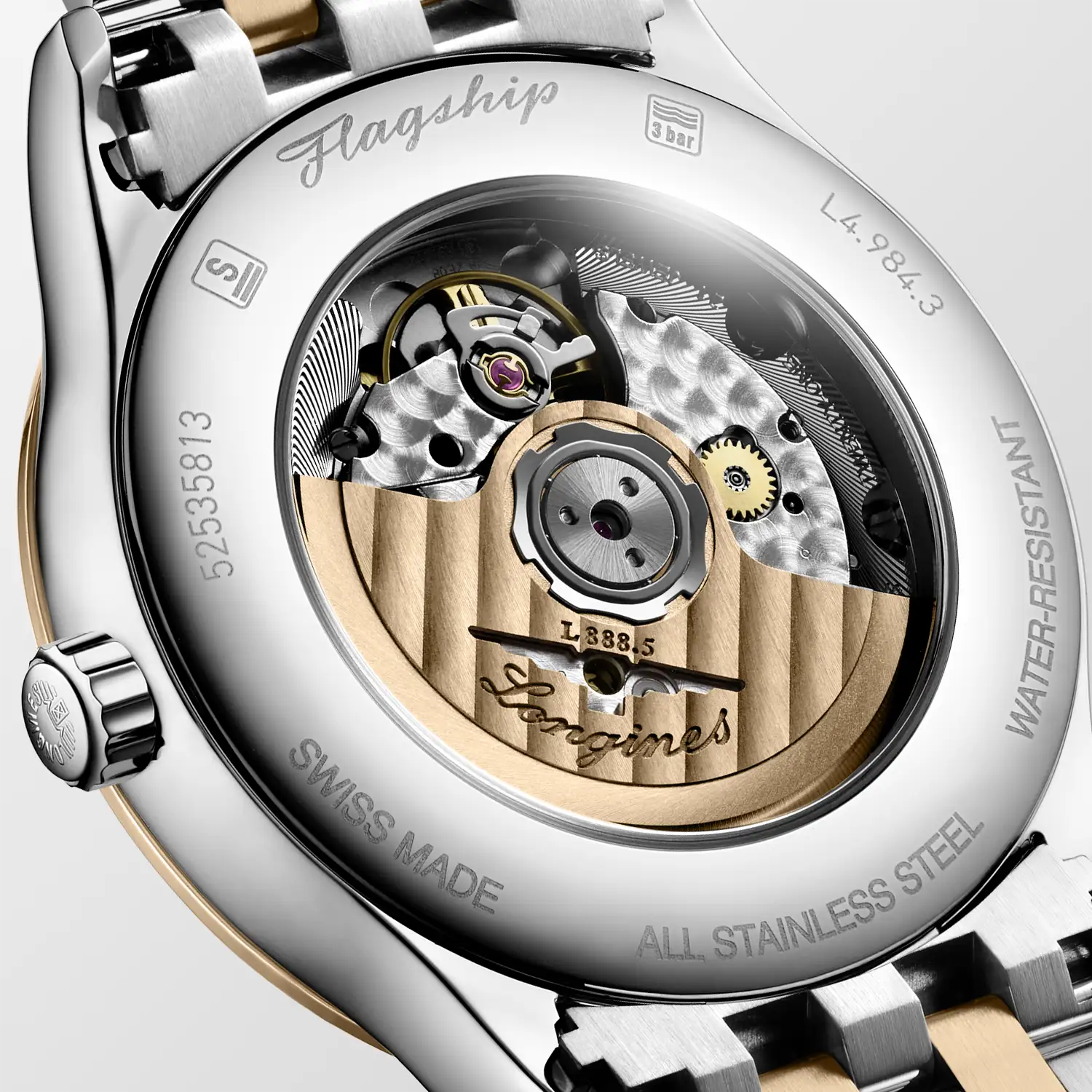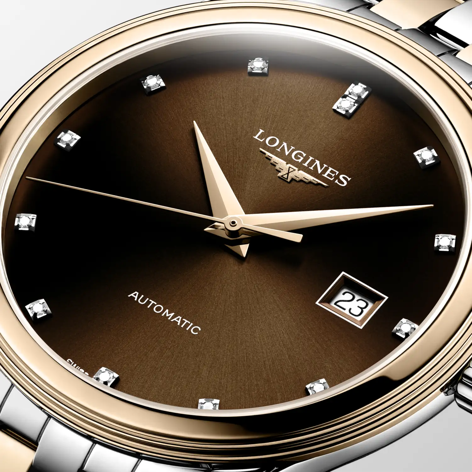 Pánské hodinky Longines Flagship L4.984.3.08.7 jsou poctou hodinářské tradici, která nikdy neztrácí svou aktuálnost. Tento dvoubarevný model s 13 pravými diamanty nepotřebuje mnoho, aby upoutal pozornost – čistá forma, technická dokonalost a historie sahající až do roku 1957. Je určen pro muže, který si uvědomuje hodnotu jednoduchosti a přesnosti, nepodléhá sezónním trendům a hledá věci nadčasové – takové, které přetrvají bez ohledu na kalendář a módu.