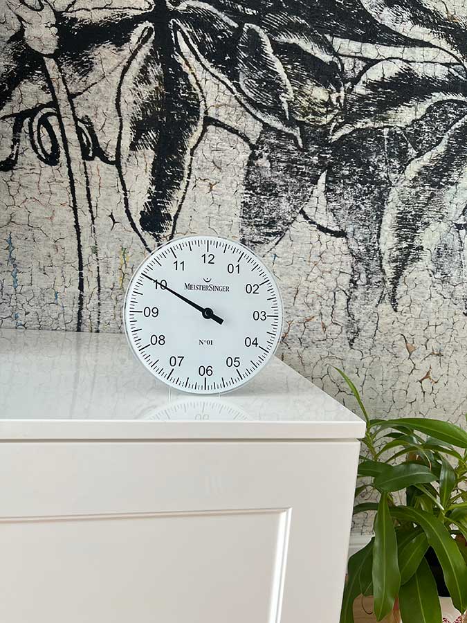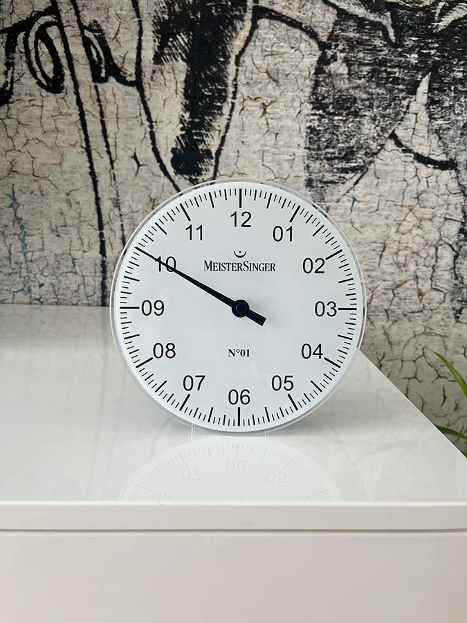Nástěnné hodiny WU18, velikost 18 cm, bílé. Kromě jedinečných jednoručiček představuje značka MeisterSinger modely nástěnných hodin, které lze umístit na stůl. Krásně vyrobené ze skutečného, těžkého skla, vybavené přesným quartzovým strojem, poskytují neuvěřitelný estetický zážitek. Dostupné ve dvou velikostech 18 cm a 35 cm. Prezentovaný model má průměr 18 cm. Pokud hledáte kvalitní hodiny, které budou plnit nejen funkční roli, ale budou dbát i na estetiku a znatelnou kvalitu, vyberte si hodiny MeisterSinger.