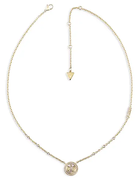 Guess My Sign JUBN04623JWYGT/U je elegantní, pozlacený náhrdelník se znamením zvěrokruhu Blíženců (Gemini) z kolekce zodiakální bižuterie Guess My Sign. Ideální pro ženy, které oceňují symboliku a fascinuje je tajemná magie vesmíru. Náhrdelník pro Blížence Guess JUBN04623JWYGT/U je vyroben z vysoce kvalitní chirurgické oceli, pozlacené žlutým zlatem a má kulatý přívěsek se symbolem zvěrokruhu, zdobený krystaly na okrajích a jedním větším uvnitř. Délka náhrdelníku je 54 cm a pohodlné zapínání na karabinku s možností nastavení zajišťuje komfort při nošení.