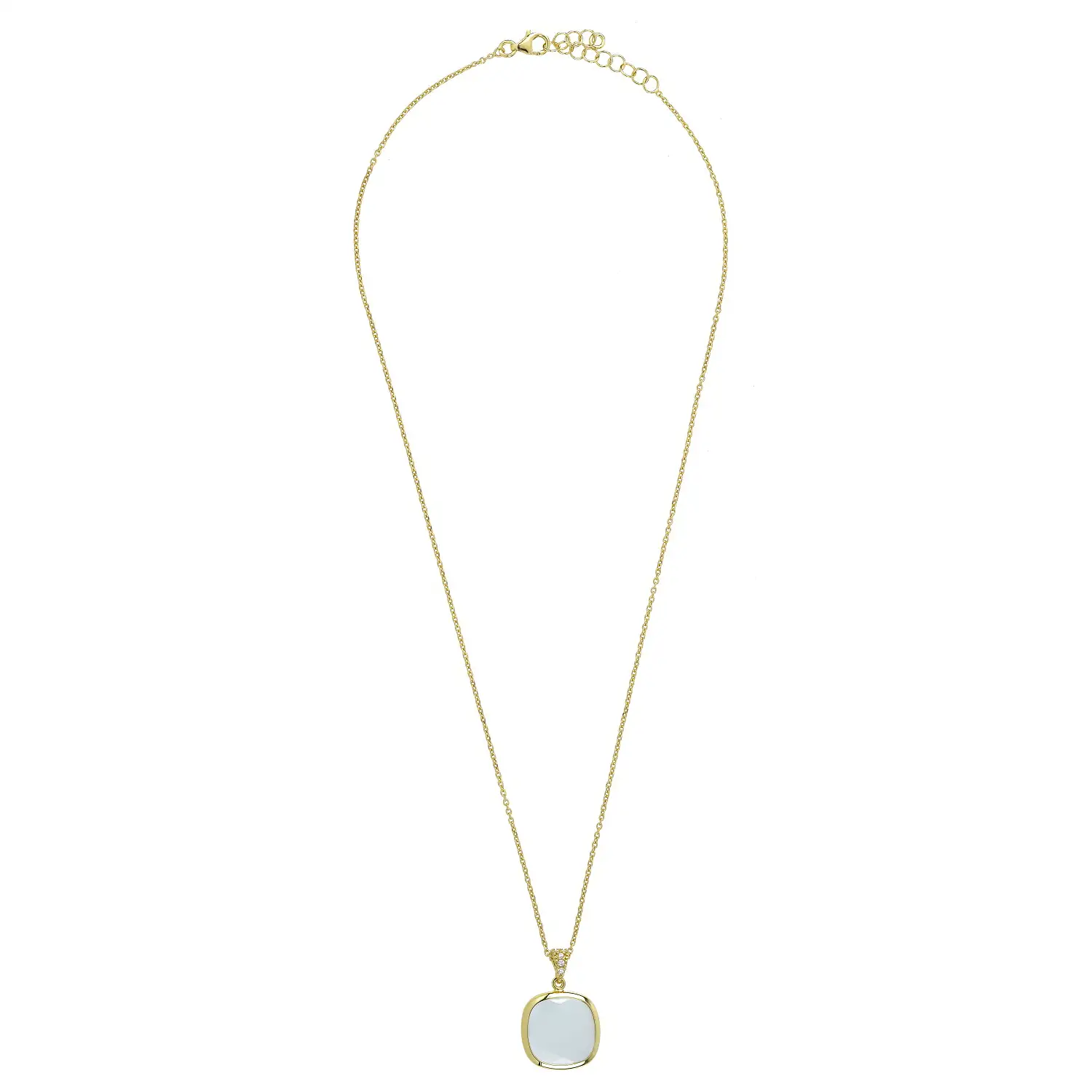 Tento elegantní náhrdelník ze stříbra pozlaceného 23karátovým zlatem je výsledkem inovativní technologie elektroforézy, která dodává kovu hluboký, královský odstín a zároveň jej chrání před nástrahami každodenního používání. V srdci projektu se nachází modrý skleněný kámen s fasetovaným brusem, který díky svému čtvercovému tvaru o straně 1,5 cm zachycuje každý lom světla. Harmonickým doplněním kompozice je spojovací dekorativní prvek osazený třpytivými zirkony, který plynule spojuje přívěsek s integrovaným řetízkem. Možnost nastavení délky v rozmezí 44–48 cm zajišťuje, že tento dámský náhrdelník ve zlaté barvě perfektně zvýrazňuje linii dekoltu bez ohledu na zvolený střih outfitu. Jde o bižuterii modulárního charakteru, která spojuje strohost geometrických tvarů s jemností barev toskánského nebe.