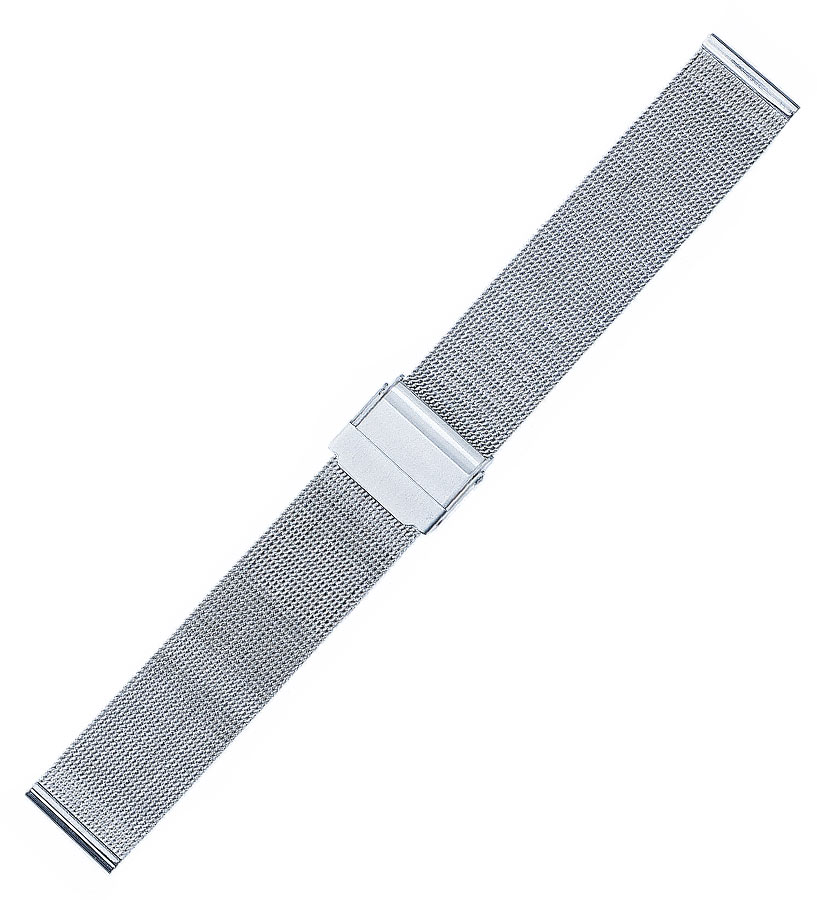Kvalitní ocelový náramek na hodinky. Struktura jemné síťoviny, která je prodyšná, dodává lehkost a radost z nošení. Spona se zapínáním na patentku s plynulým přizpůsobením prakticky každému zápěstí. Eleganci dodávají leštěné hroty, které se nasazují na hodinky. Náramek věnovaný klasickým dámským a pánským hodinkám. Délka 185 mm. Dostupné velikosti: 14, 16, 18 a 20 mm. Před objednáním si prosím vyberte šířku náramku.