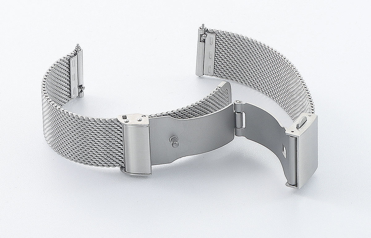 Kvalitní ocelový náramek na hodinky s motýlkovou sponou . Struktura jemné síťoviny, která je prodyšná, dodává lehkost a radost z nošení. Zapínání na knoflíky s plynulým přizpůsobením prakticky každému zápěstí. Matný povrch dodává eleganci. Náramek věnovaný klasickým a sportovním dámským a pánským hodinkám. Délka 200mm. Dostupné velikosti: 16, 18, 20 a 22 mm. Před objednáním si prosím vyberte šířku náramku.