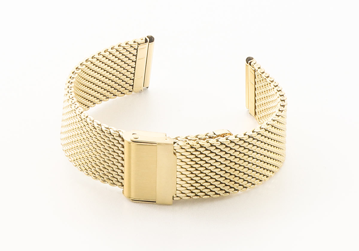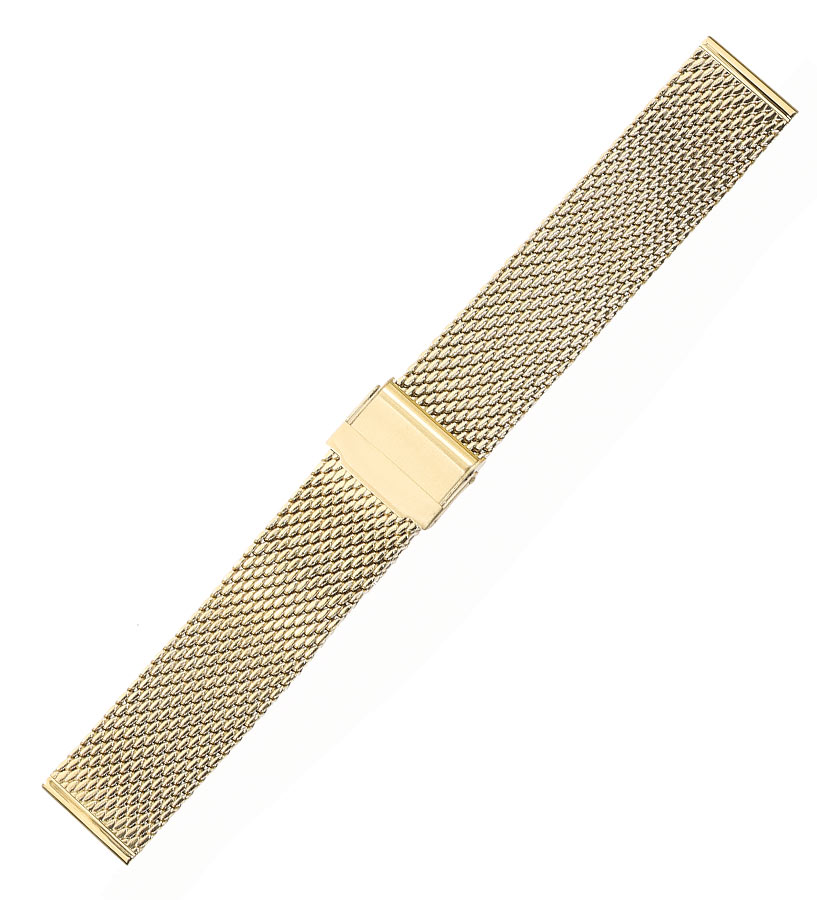 Vysoce kvalitní ocelový milánský náramek s PVD povlakem ve žlutém zlatě. Struktura ze silnější síťoviny, která propouští vzduch, dodává lehkost a potěšení z nošení. Spona se zapínáním na patentku s plynulým přizpůsobením prakticky každému zápěstí. Matný povrch dodává eleganci. Náramek věnovaný klasickým a sportovním hodinkám pro muže i ženy. Délka 195 mm. Dostupné velikosti: 20, 22 a 24 mm. Před objednáním si prosím vyberte šířku náramku.