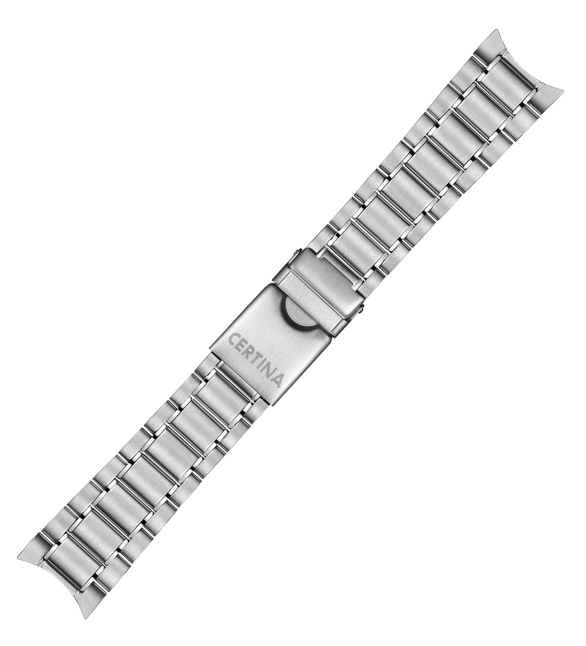 Originální náramek pro pánské hodinky Certina DS 1 . Silný, masivní náramek Certina C605011633, vyrobený z nerezové oceli. Elegantní vzor vyrobený z leštěných a matných prvků. Věnováno exkluzivně pánským hodinkám Certina DS 1 se servisním číslem C006407 a C006424 , které je umístěno na zadní straně pouzdra ze spodní části hodinek. Náramek se skládá ze dvou mřížek a náramkového zámku s dodatečnou ochranou. Šířka náramku je 21 mm .