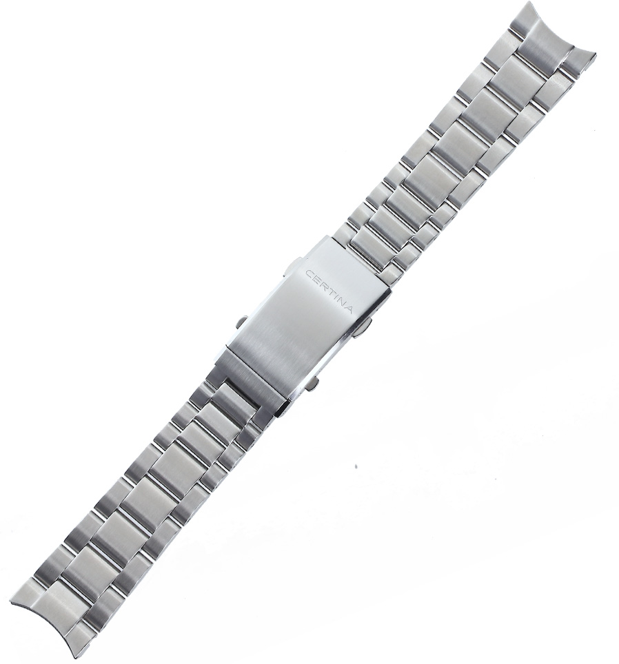 Originální náramek pro pánské hodinky Certina DS Action Gent, verze s bateriovým quartz mechanismem. Sportovní, diverský náramek Certina C605019686, vyrobený z nerezové oceli. Věnováno exkluzivně pánským hodinkám Certina DS Action Gent se servisním číslem C032410, které je umístěno na krytu ve spodní části hodinek. Náramek se otevírá pomocí knoflíků a má přídavný nastavitelný diverský zámek. Odnímatelné články umožňují, aby se vešly na každé zápěstí. Šířka 20 mm.