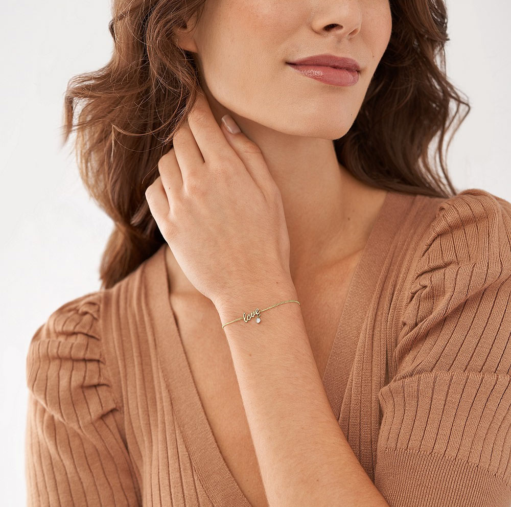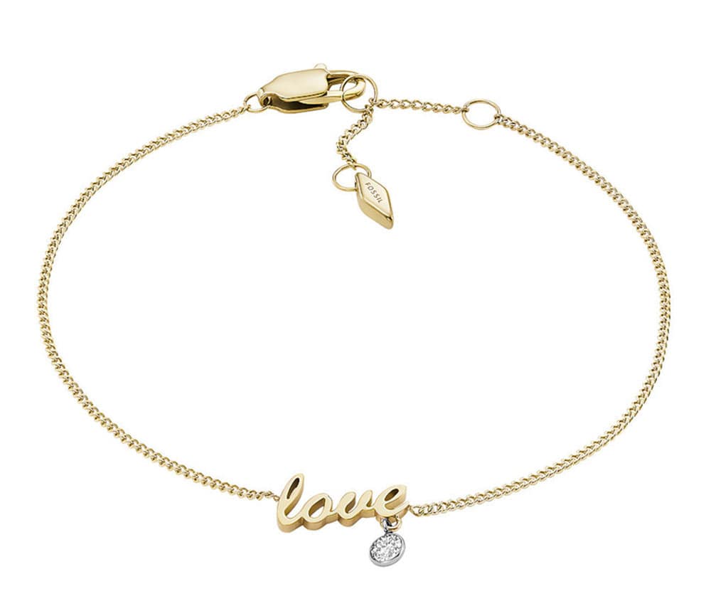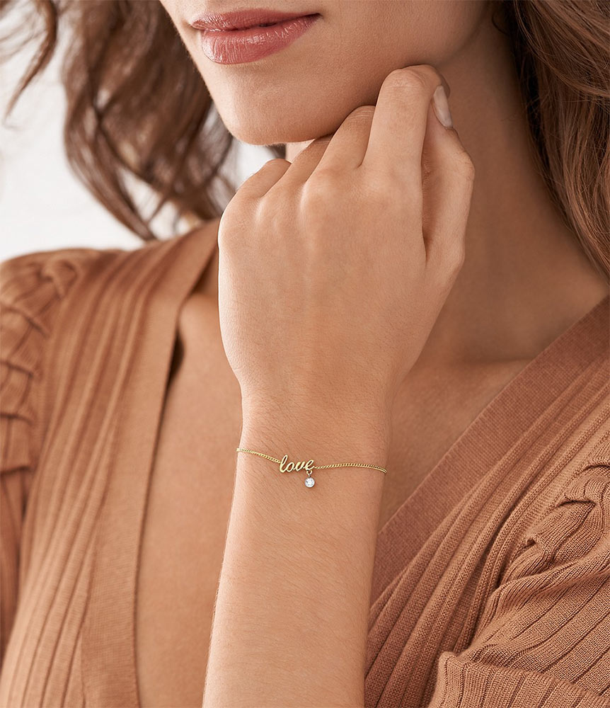 Náramek s nápisem love, na kterém je připevněna průhledná kubická zirkonie Fossil Sadie, je pro ni skvělým nápadem na dárek k Valentýnu kvůli okouzlujícímu milostnému akcentu. Optimální délka náramku je 170 mm a dalších 30 mm je nastavitelný řetízek s humrovou sponou.