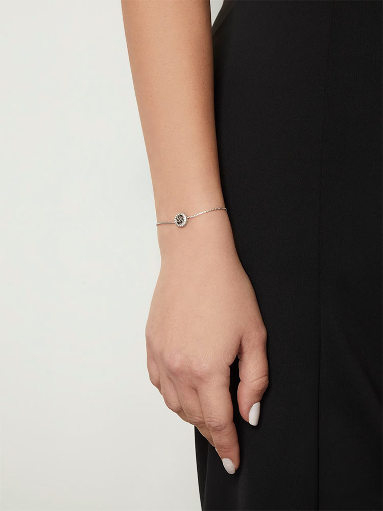 Náramek s přívěskem Guess 4G Crush JUBB04163JWRHS je módní šperk, který podtrhne každou stylizaci. Vyrobený z platinovaného rhodiem, antialergické ušlechtilé oceli, zaručuje trvanlivost a elegantní vzhled. Přívěsek s logem 4G dodává designerský charakter a krystaly pavé luxusní lesk. Zapínání na karabinku zaručuje bezpečnost při nošení. Délka náramku je 14,6 cm s přídavným řetízkem o délce 3,8 cm pro individuální nastavení.