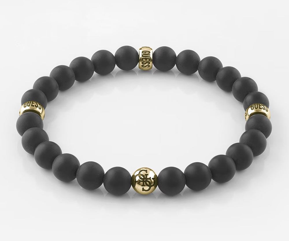 Pánský elastický náramek z černých korálků achátu obohacený o zlaté detaily s vyrytým logem 4G. Vytvořeno známou americkou společností GUESS. Tento módní doplněk, který je součástí kolekce 4G Icon, je ideální pro každodenní nošení. Černý korálkový náramek s přívěsky Guess JUMB02117JWYGBKT/U byl vytvořen pro moderní muže, kteří mají rádi módní a kvalitní šperky.