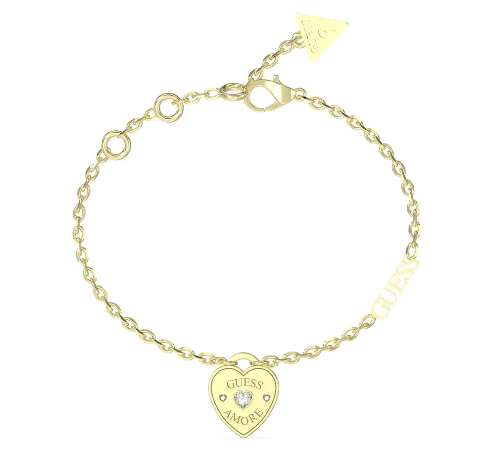 Pozlacený náramek z ušlechtilé oceli se srdcem Guess Amore JUBB05057JWYGS je šperkařskou interpretací emocí, která se skvěle hodí jako romantický akcent outfitu nebo sofistikovaný dárek, ideální na Valentýna. Návrháři značky zde spojili módní charakter masivnějšího řetízkového provedení s jasnou symbolikou – centrálním medailonem s gravírovaným nápisem „GUESS AMORE”. Celek rozzáří tři precizně vsazené krystaly v jemném tvaru srdce ve dvou velikostech. Jde o doplněk pro ženy, které hledají rovnováhu mezi výrazným fashion designem a emotivním poselstvím šperku.