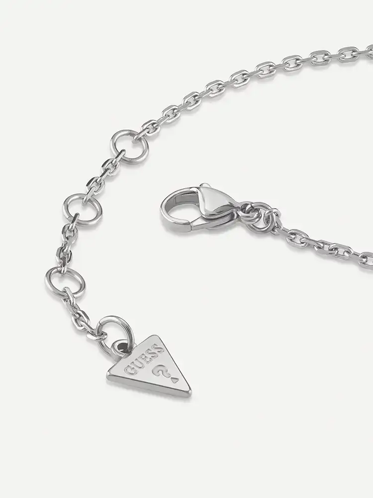 Charakteristickým prvkem náramku je logovaný detail GUESS a ikonický trojúhelníkový přívěsek s logem značky, který jemně podtrhuje designové DNA této americké ikony stylu. Nastavitelné zapínání umožňuje přizpůsobení délky zápěstí, což zajišťuje ideální přiléhavost a pohodlí při nošení. Jedná se o šperk navržený pro ženy, které spojují klasiku s moderním minimalismem a oceňují kvalitu v každém detailu.