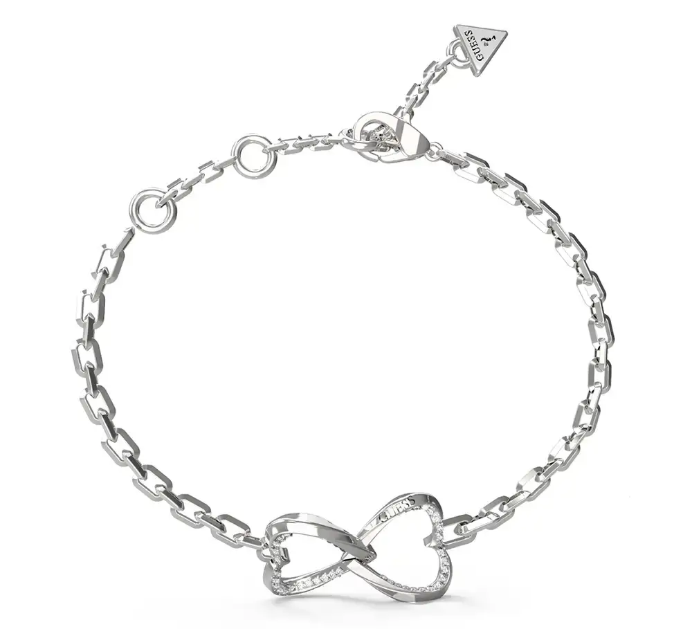 Ústředním prvkem tohoto šperku je jemný přívěsek ve tvaru dvou propojených srdcí, symbolizující cit a blízké vztahy. Drobné zirkony, které zdobí přívěsek, dodávají lesk a jemnou eleganci, která dokonale zapadá do aktuálních módních trendů. Stříbrný náramek Guess z chirurgické oceli z kolekce Mon Amour není jen krásným doplňkem, ale také skvělým dárkem pro ženu – zejména jako symbol vztahu nebo významných okamžiků.