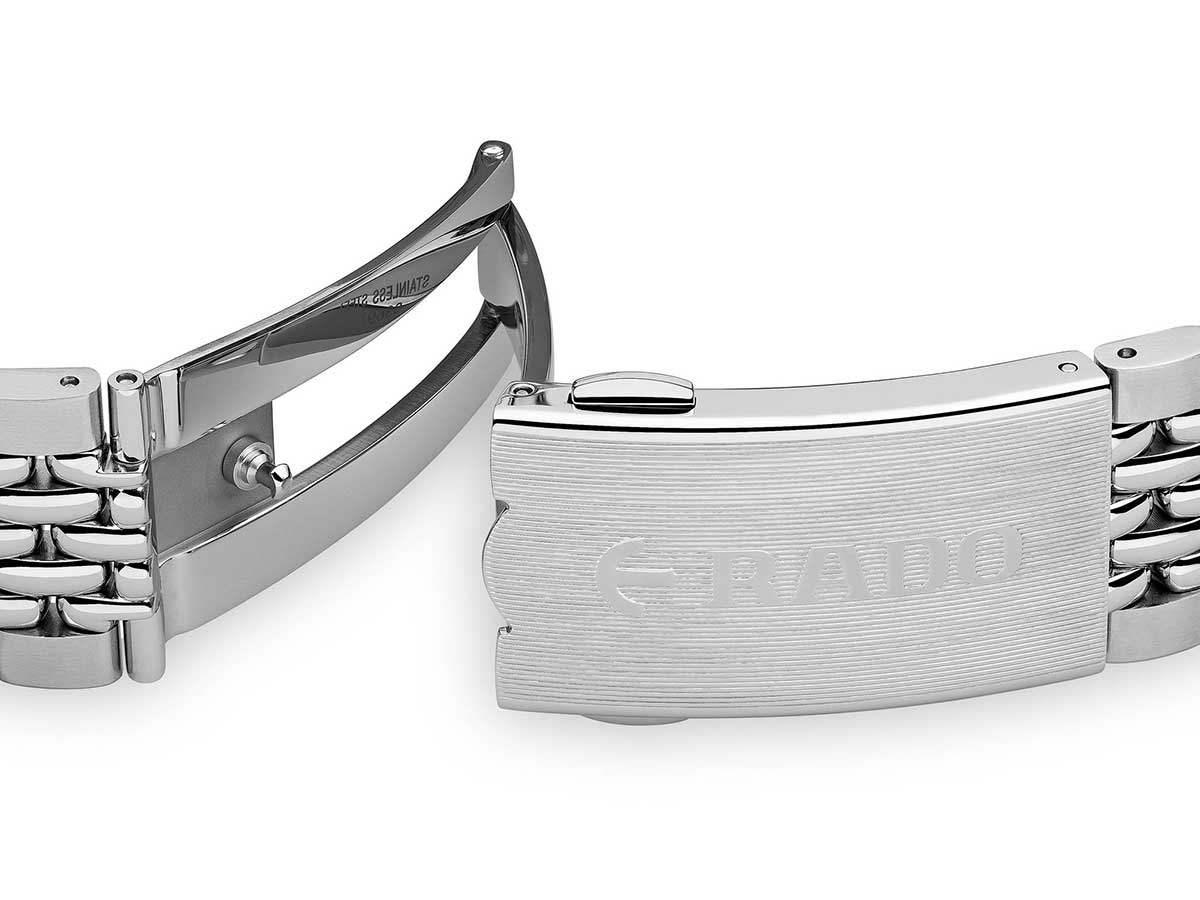 Ocelový náramek Rado R070369710 věnovaný hodinkám Captain Cook s průměrem pouzdra 42 mm . Díky inovativnímu systému Easy-Clip lze řemínky a náramky Captain Cook Automatic měnit rychle, snadno a bez dalších nástrojů. Svému Rado tak můžete během okamžiku dát nový vzhled. Tento náramek z nerezové oceli s broušenými a leštěnými prvky se extrémně pohodlně nosí a zajišťuje maximální odolnost. Speciální rýžový vzor dodává retro styl. Náramek je k pouzdru hodinek připevněn dvěma teleskopy. Zapínání se zapíná na knoflíky. Upozorňujeme, že tento náramek je určen pouze pro modely Captain Cook Automatic o průměru 42 mm: