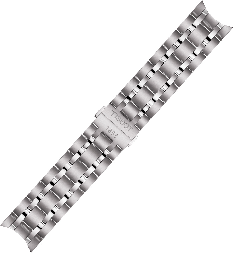 Silný, masivní náramek Tissot T605028315, vyrobený z nerezové oceli. Sportovní, elegantní design vyrobený z leštěných a matných prvků. Věnováno výhradně pánským hodinkám Tissot Couturier se servisními čísly T035446, T035407, T035428 a T035410, které se nachází na zadní straně pouzdra ze spodní části hodinek. Náramek se skládá ze dvou mřížek a zámku náramku otevíraného stisknutím dvou tlačítek. Šířka náramku je 22 mm.