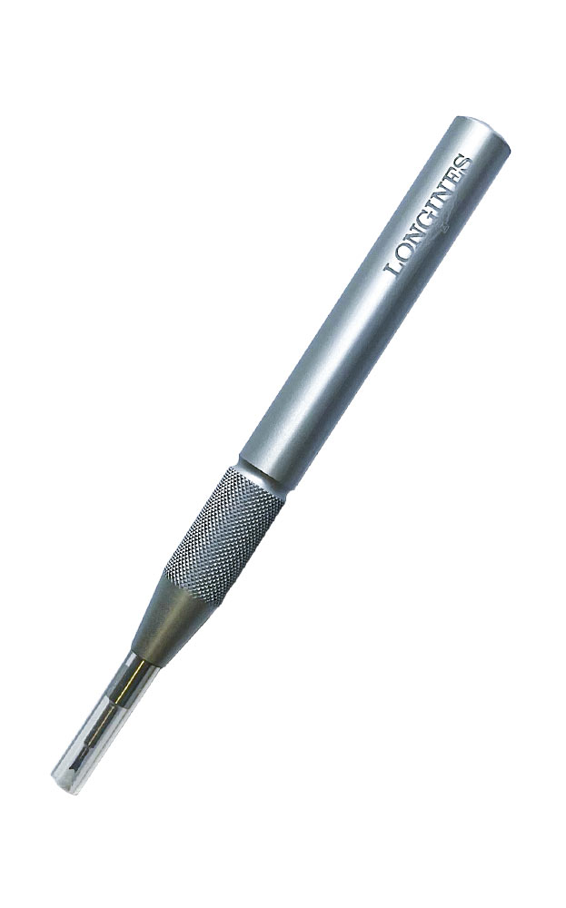 Utahovák opasku Longines L870167787 , kompaktní velikost. Plochý konec zařízení slouží k utažení popruhu jeho zatlačením mezi popruh a očko pouzdra a posunutím dalekohledu směrem k popruhu.