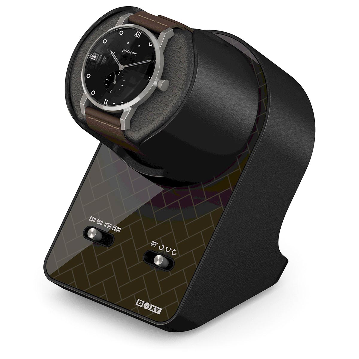 Rotomat Beco Boxy BLDC Nightstand EXT Skyline Shadow 309134 hodinkové natahovací zařízení s automatickým strojkem. Moderní tvar a kompaktní rozměry umožňují umístění na noční stolek nebo jiný kus nábytku. Snadno se používá, má dva přepínače: první pro počet otáček a druhý pro směr otáčení.