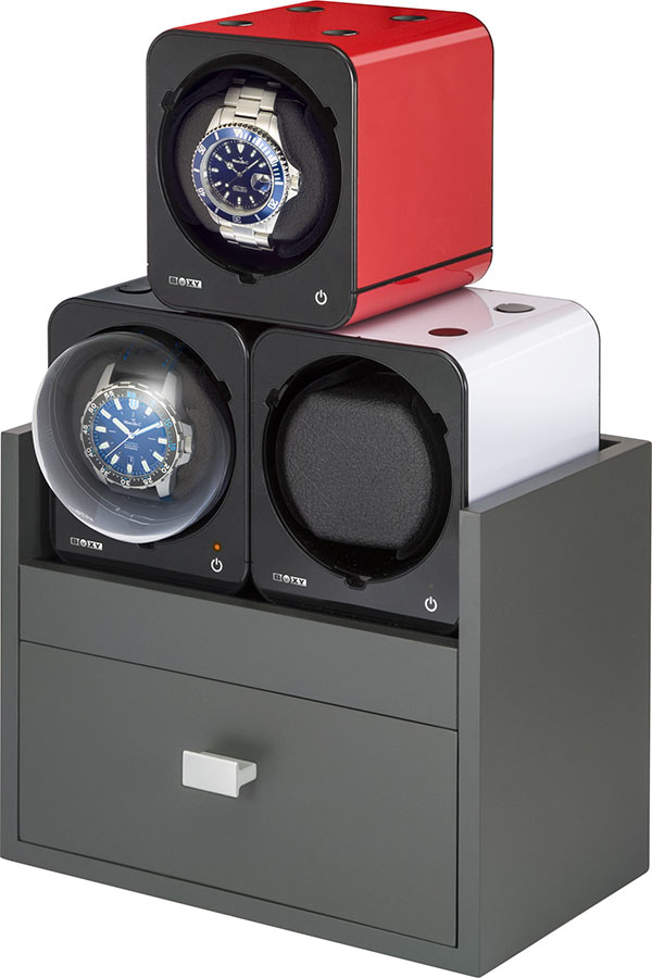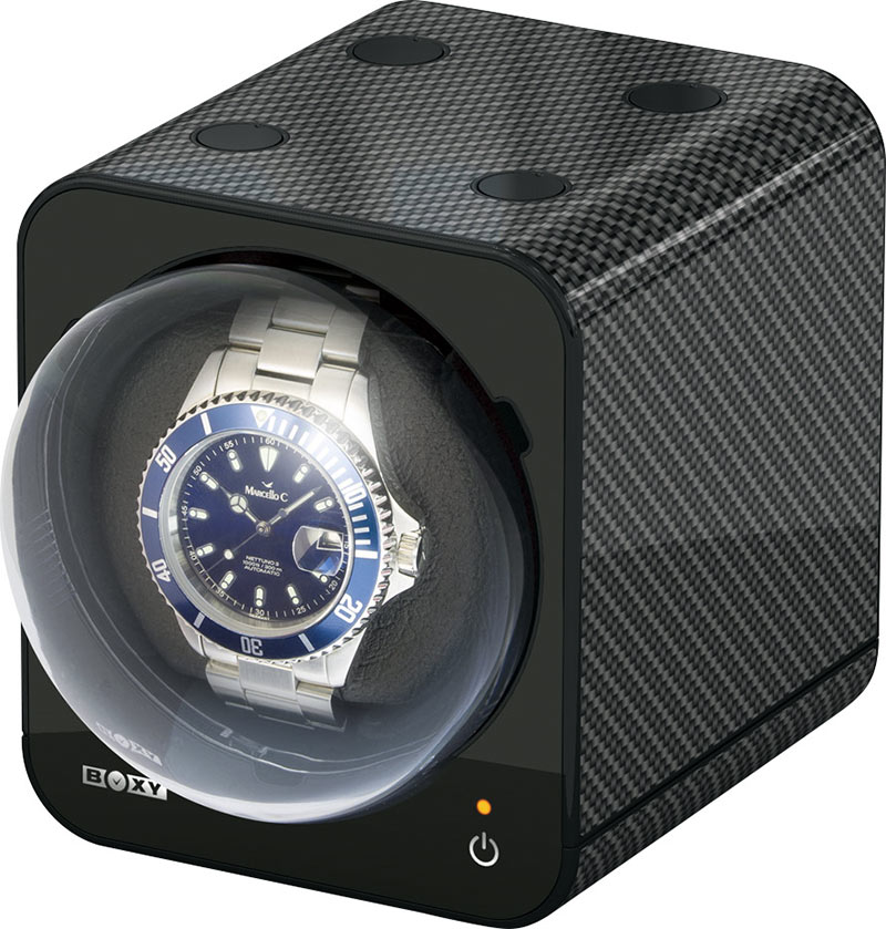 Windomat Beco Boxy Fancy Brick 309407 na 1 hodinky v černé barvě s uhlíkovou texturou. Vysoce kvalitní zařízení pro natahování hodinek s automatickým nátahem. Pouzdro zdůrazňuje silný, moderní a výrazný design. Kryt navíc chrání hodinky před prachem a nečistotami. Jedinečnost tohoto rotoru spočívá v tom, že jej lze kombinovat s jinými stejného typu a vytvářet tak jedinečné a neobvyklé konstrukce. Chcete-li uložit více hodinek, můžete propojit až 12 kostek Boxy Fancy Bricks. I v kombinované verzi je k jejich udržení potřeba pouze jeden napájecí zdroj.