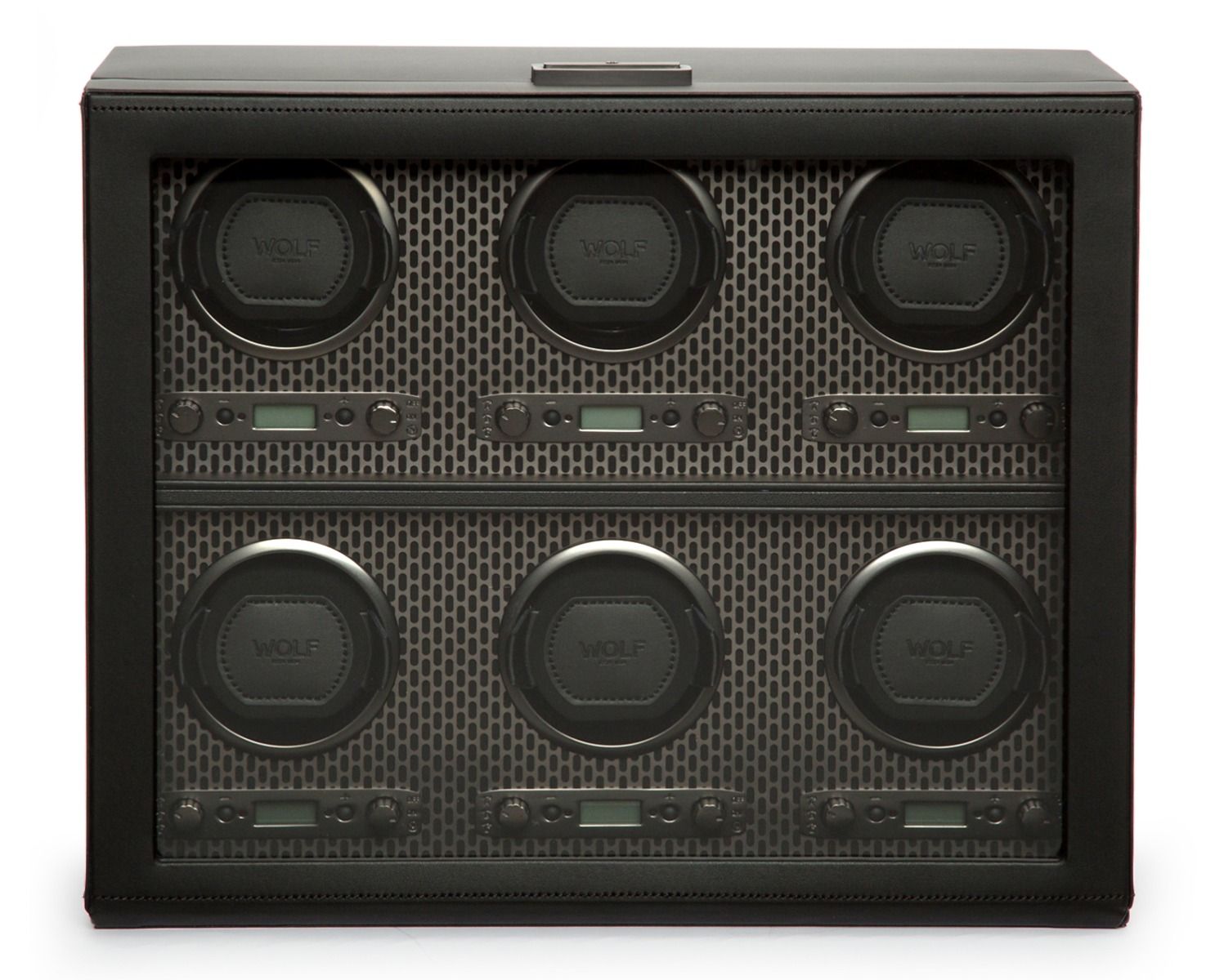 Exkluzivně hotový natahovač WOLF Axis 469603 pro natahování 6 automatických hodinek současně. Vyrobeno ze dřeva s krásnou černou veganskou kůží . Pečujte o své automatické hodinky a jejich mechanismus! Použití rotoru výrazně zlepšuje stav hodinových mechanismů navíjených pohybem rotoru/ručičky. Viditelným způsobem se zlepšuje udržení správné přesnosti chůze a prodlužuje se životnost mechanismu.