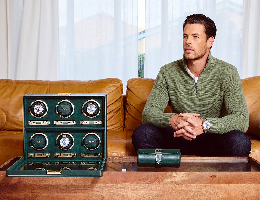 Vysoce kvalitní natahovač WOLF British Racing 792441 pro natahování šesti hodinek s automatickým nátahem. Zelená barva odkazuje na historické britské závodní vozy z počátku 20. století. Ručně vyráběné pouzdro z nejkvalitnější veganské kůže zdobené prvky zlaté barvy. Skleněná tabule chrání hodinky a vnitřek natahovače hodinek před prachem a nečistotami. Rotomat lze zavřít klíčem. Exkluzivní design natahovače hodinek WOLF British Racing z něj dělá jeden z nejoblíbenějších modelů na trhu příslušenství k automatickým hodinkám.