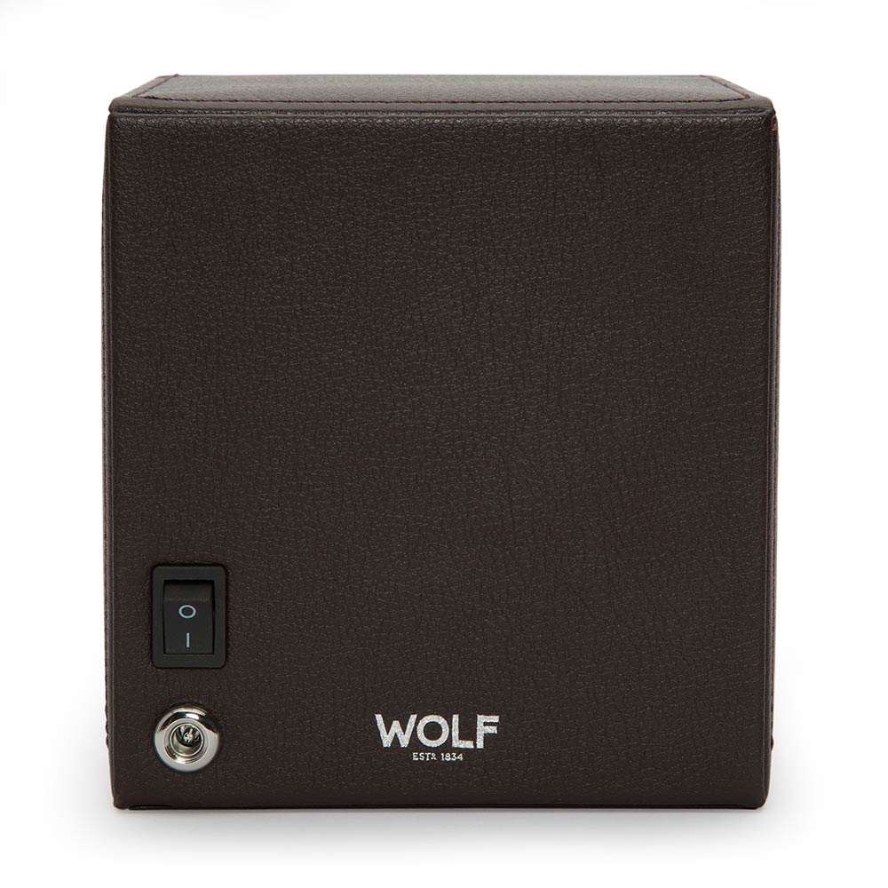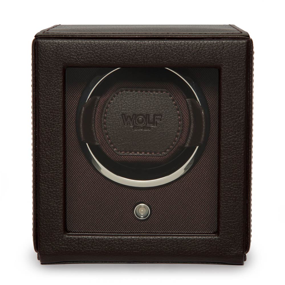 Kvalitní natahovač německé výroby pro natahování hodinek s automatickým nátahem. Pouzdro, ručně vyrobené z nejkvalitnější hnědé lícové kůže, klade důraz na nejvyšší kvalitu a důraz na detail. Skleněná tabule v otevřeném víku chrání hodinky a vnitřek natahovače před prachem a nečistotami. Exkluzivní design WOLF Cub Winder With Cover z něj dělá jeden z nejoblíbenějších modelů na trhu s příslušenstvím k automatickým hodinkám. Hodinky umístěné v natahovači hodin vypadají efektně, což přispívá k zatraktivnění interiéru každé stylové místnosti zajímavou dekorací.