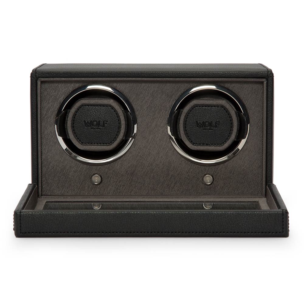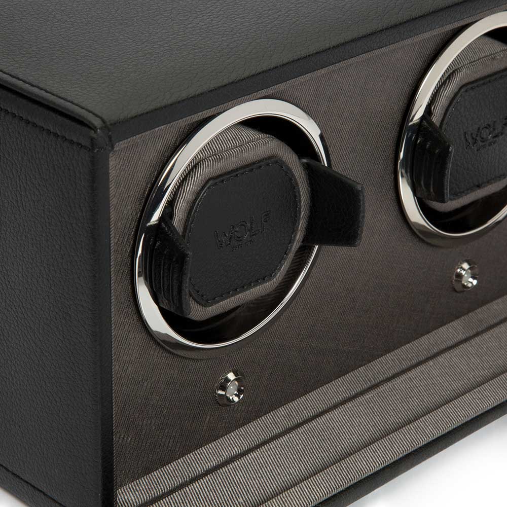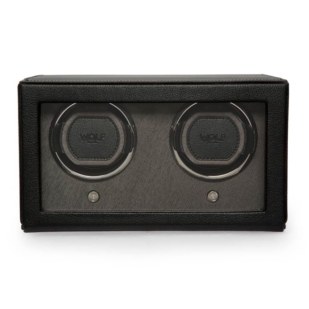 WOLF Double Cub 461203 v černé barvě je vysoce kvalitní rotomat pro natahování dvou automatických hodinek. Exkluzivní design z nich dělá jeden z nejčastěji volených modelů na trhu hodinářského příslušenství. Hodinky umístěné v rotomatu vypadají efektně, což přispívá k zatraktivnění každé stylové místnosti zajímavou dekorací. Uzamykatelný kryt se sklem poskytuje ochranu proti prachu a poškození a zároveň poskytuje výhled na otáčející se hodinky.