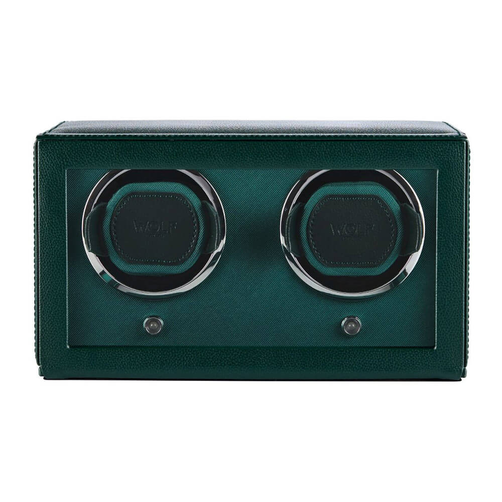 Natahovač WOLF Double Cub 461241 v odstínu hluboké zelené není jen funkčním příslušenstvím, ale i stylovým doplňkem každé sbírky automatických hodinek. Navržený pro dva časoměry spojuje přesnost chodu s elegantním, výrazným vzhledem. Jeho konstrukce je založena na renomovaném mechanismu WOLF s patentovaným čítačem otáček, který zajišťuje přesné udržení rezervy chodu bez zbytečného přepínání pružiny. Každý ze dvou modulů funguje nezávisle, což umožňuje uživateli individuálně nastavit režim a směr otáčení pro každý hodinek zvlášť.