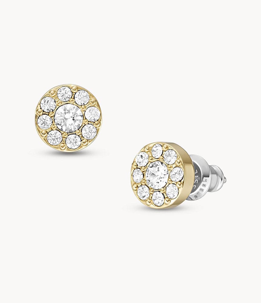 Kulaté zlaté náušnice Fossil Jewelry se zirkony jsou pro ni skvělým nápadem na dárek a zároveň skvělým doplňkem základní kolekce.