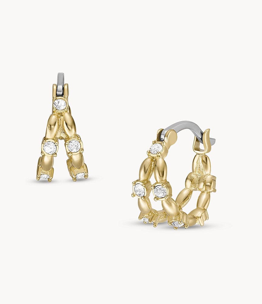 Fossil Jewelry pozlacené dvojité kruhové náušnice se zirkony jsou pro ni skvělým tipem na dárek a zároveň skvělým doplňkem k základní kolekci.